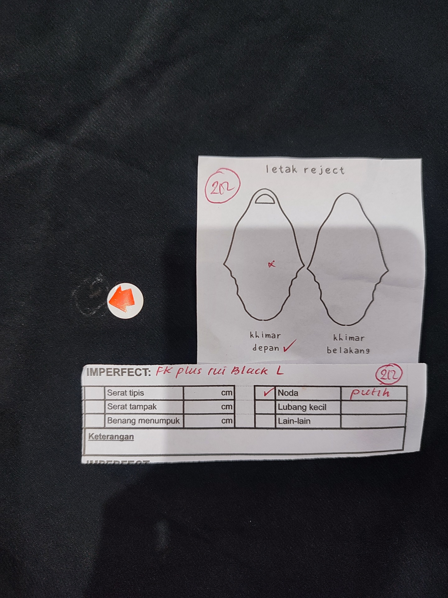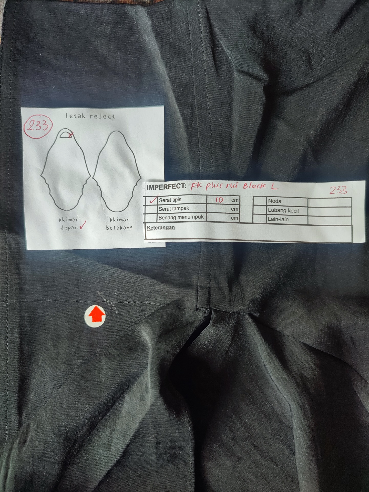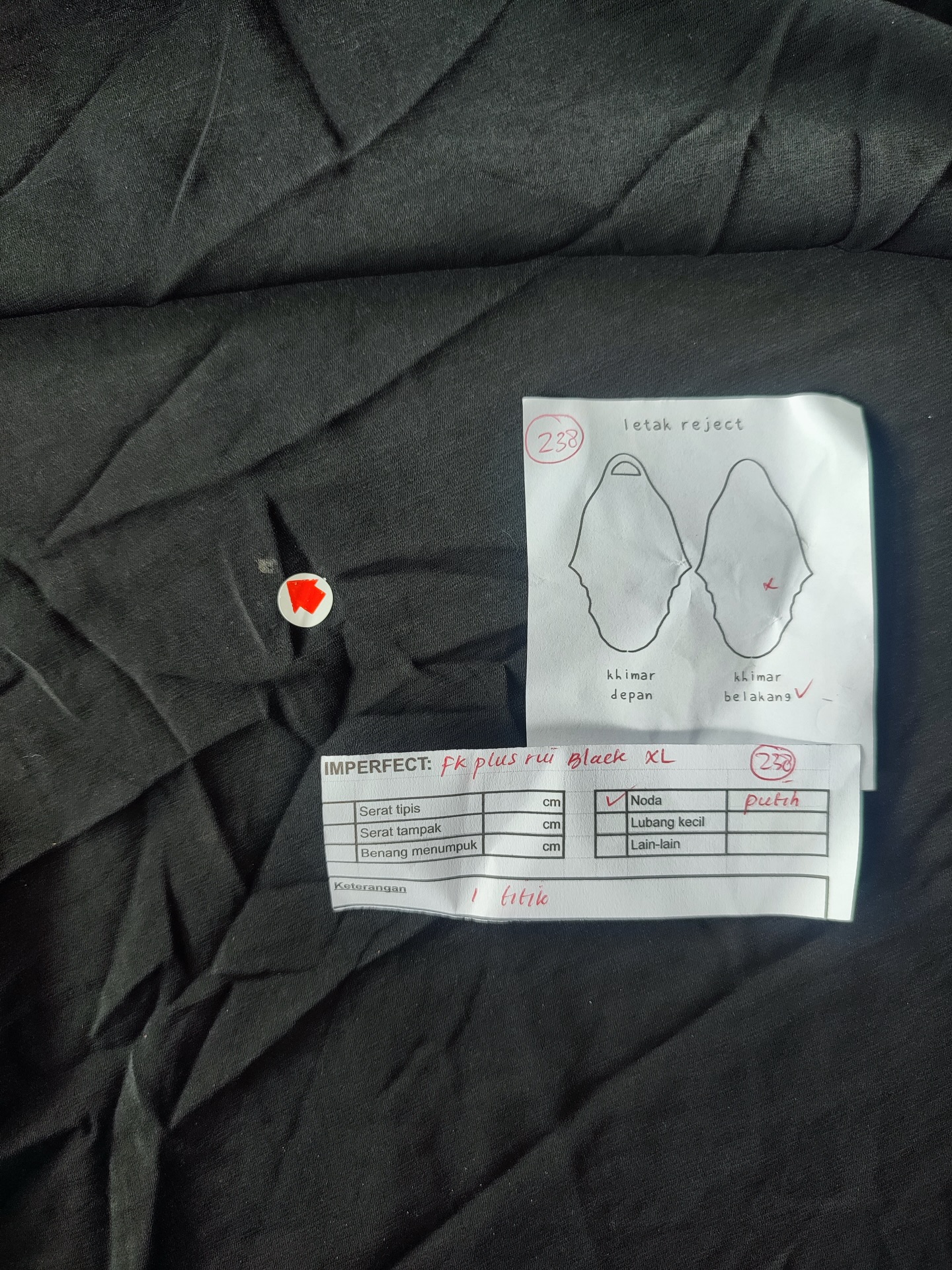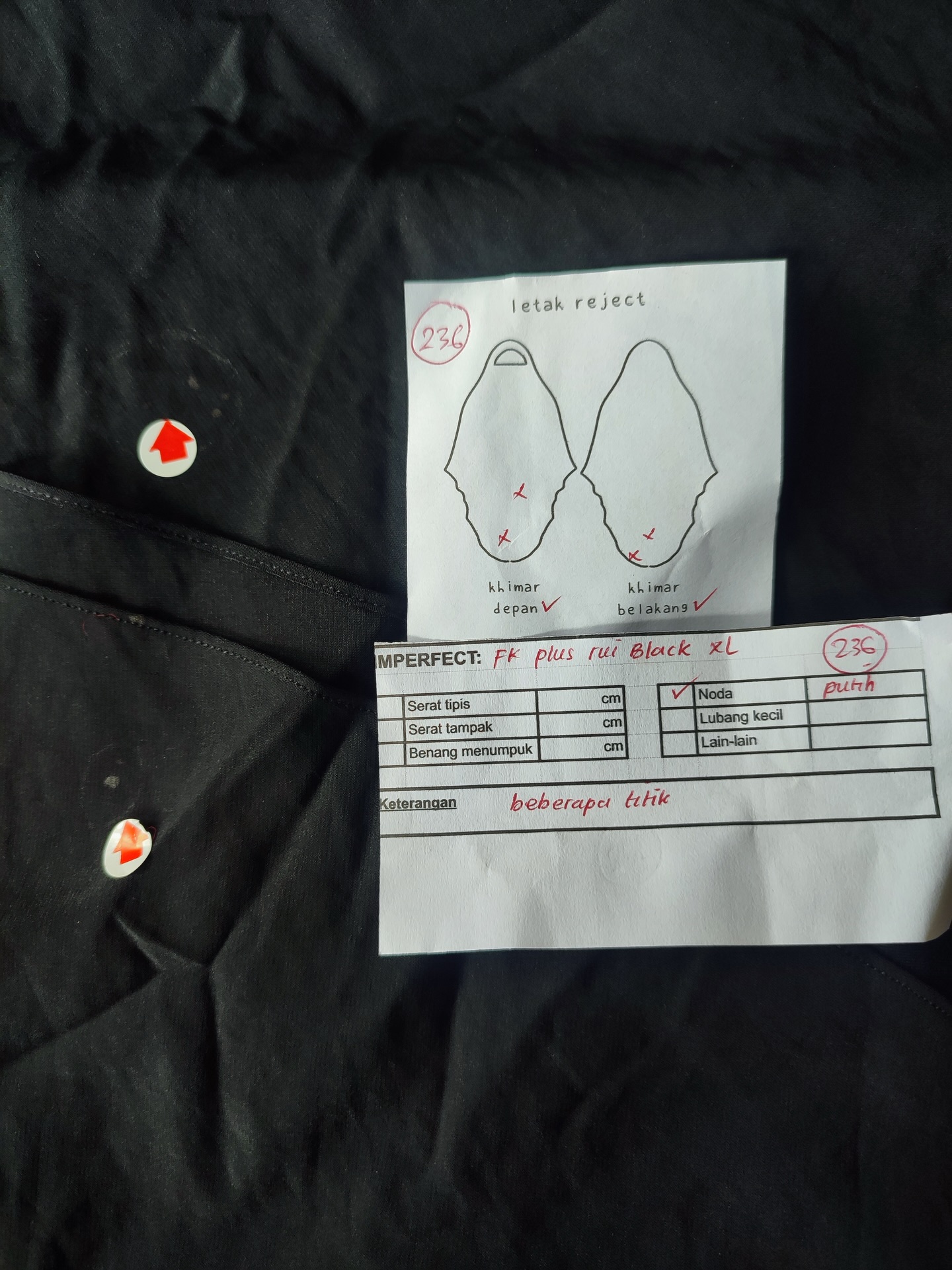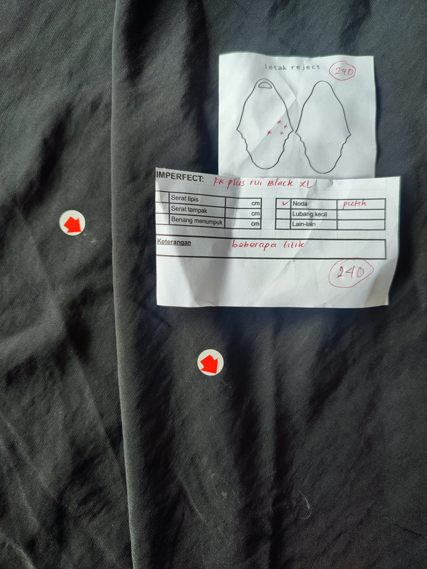 photo includes code, color, size, and defect details.