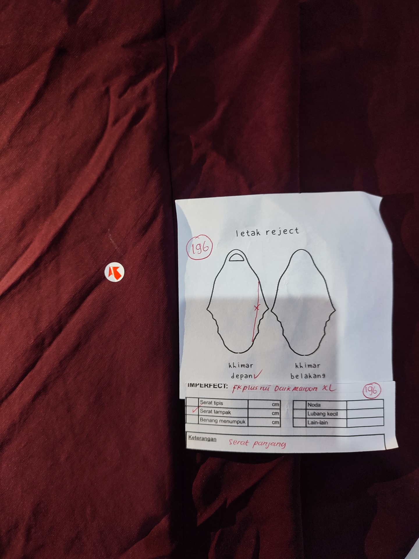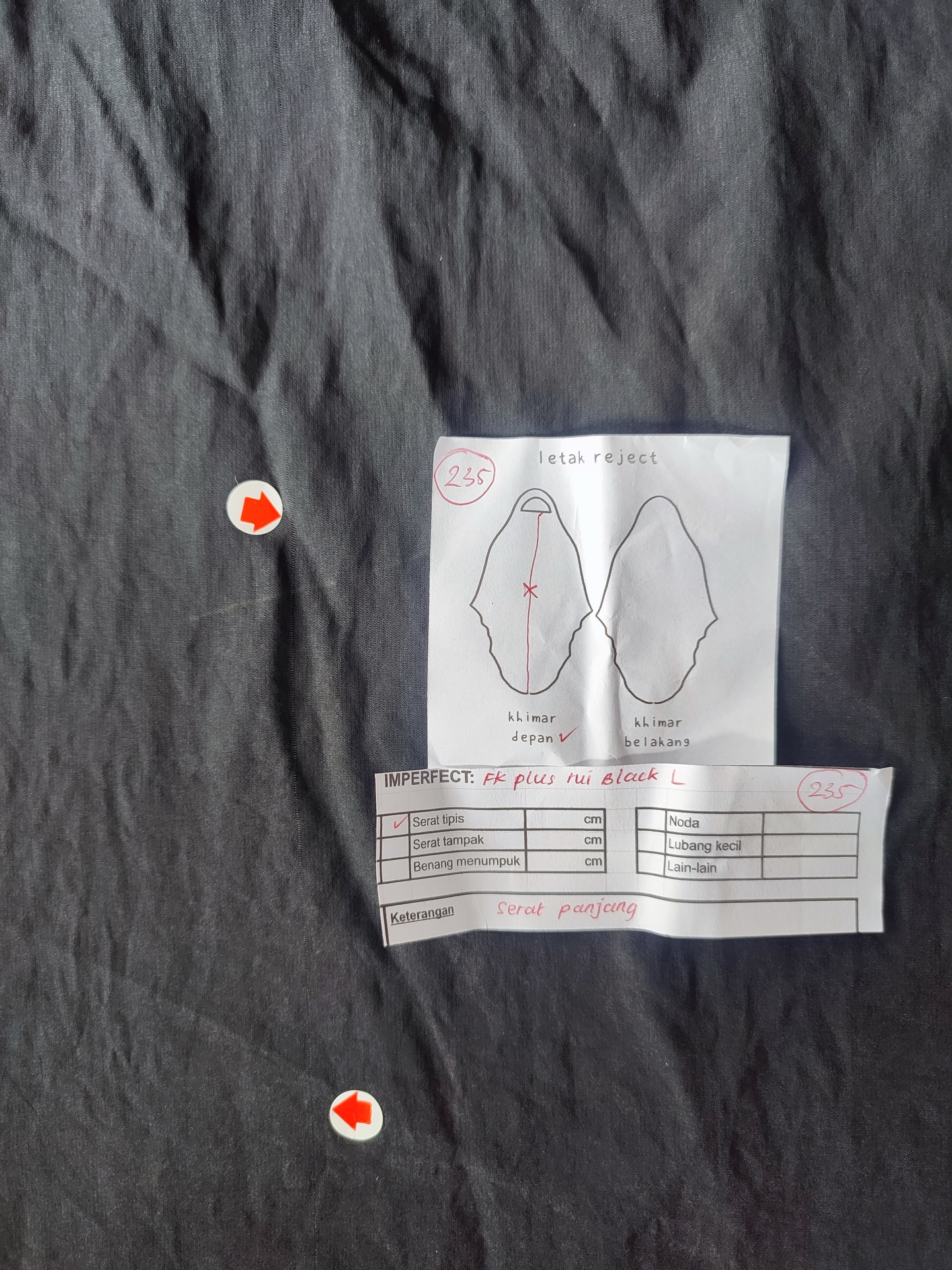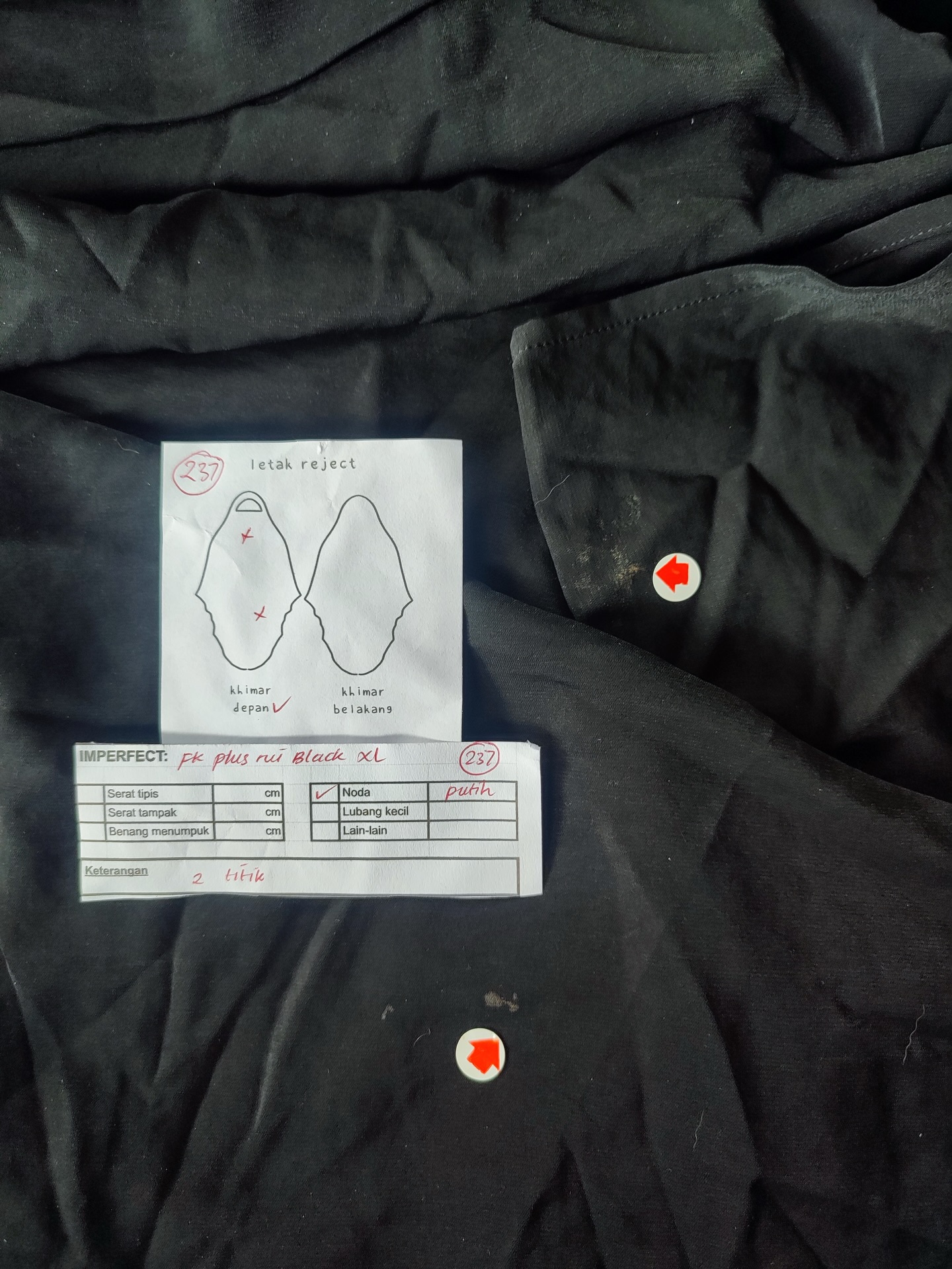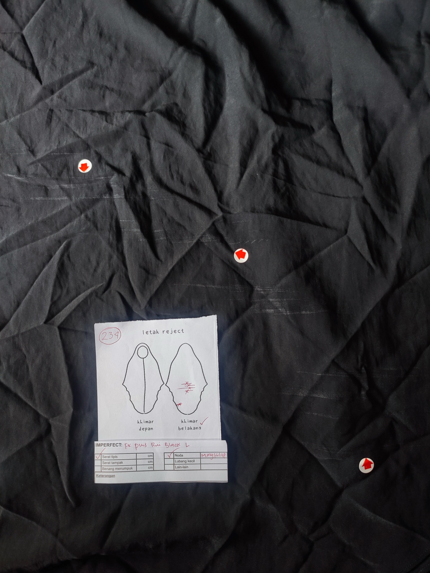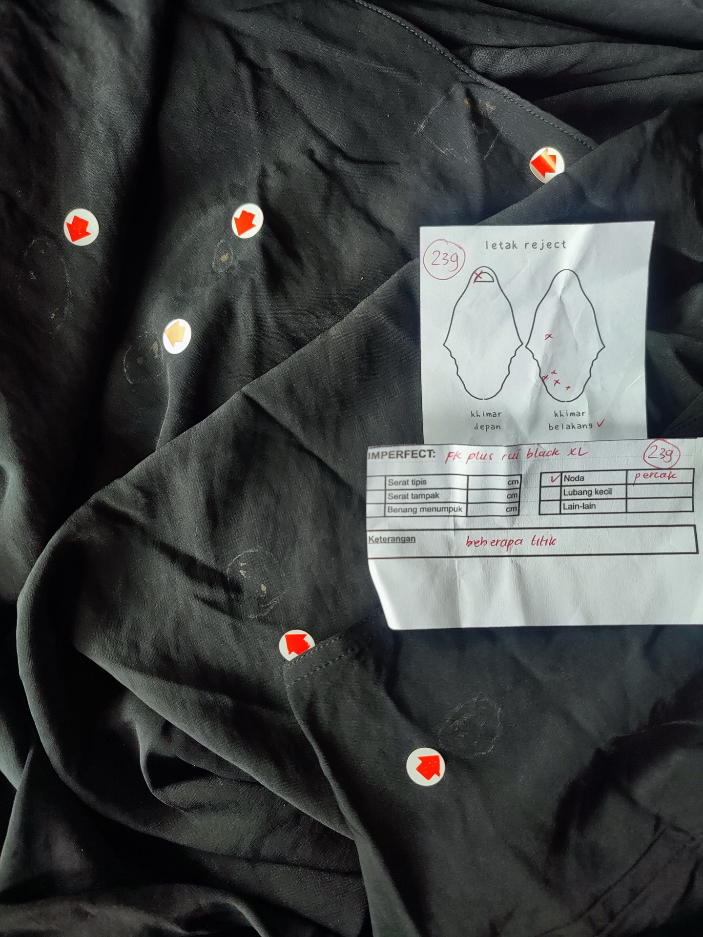 photo includes code, color, size, and defect details.