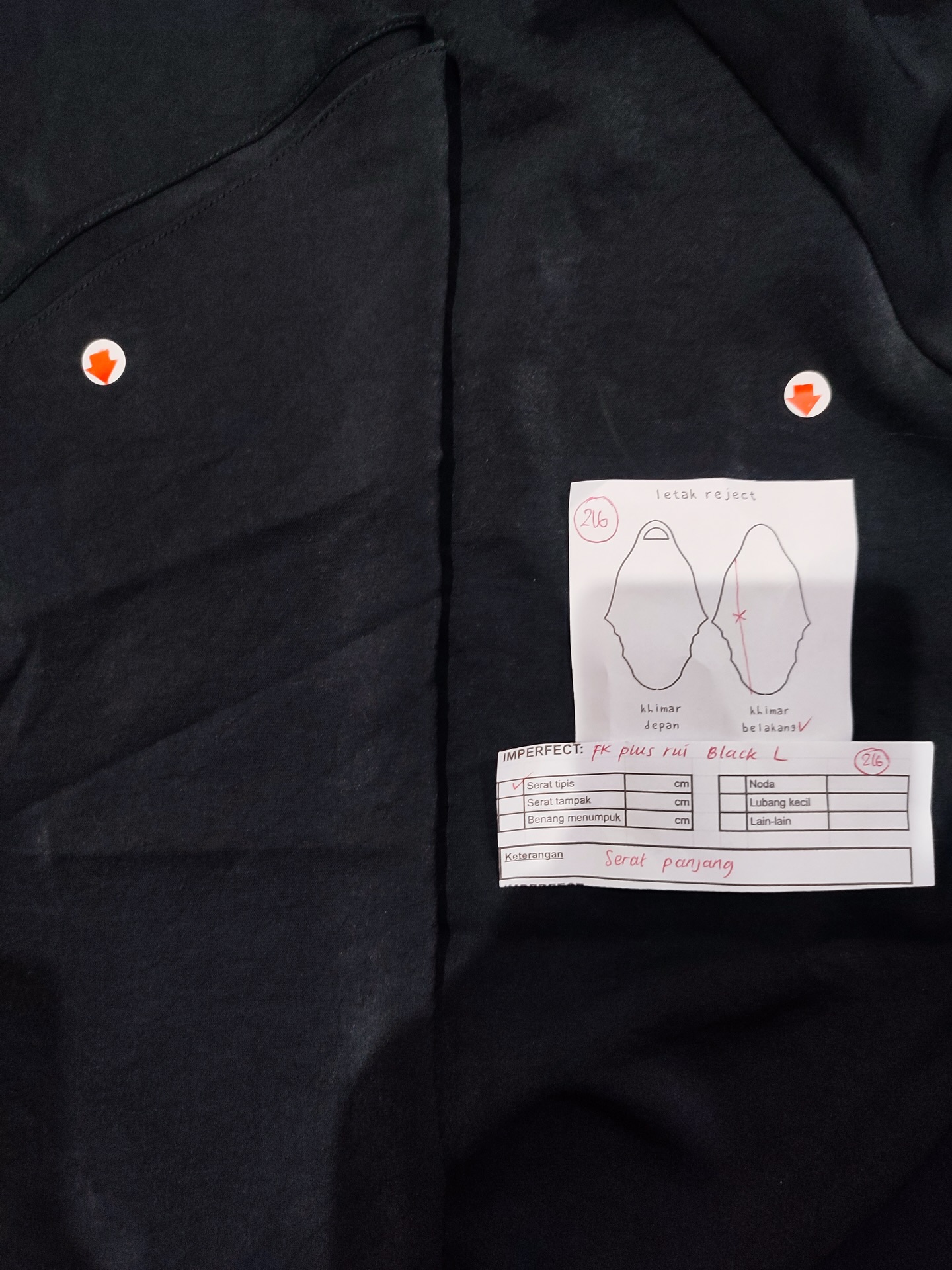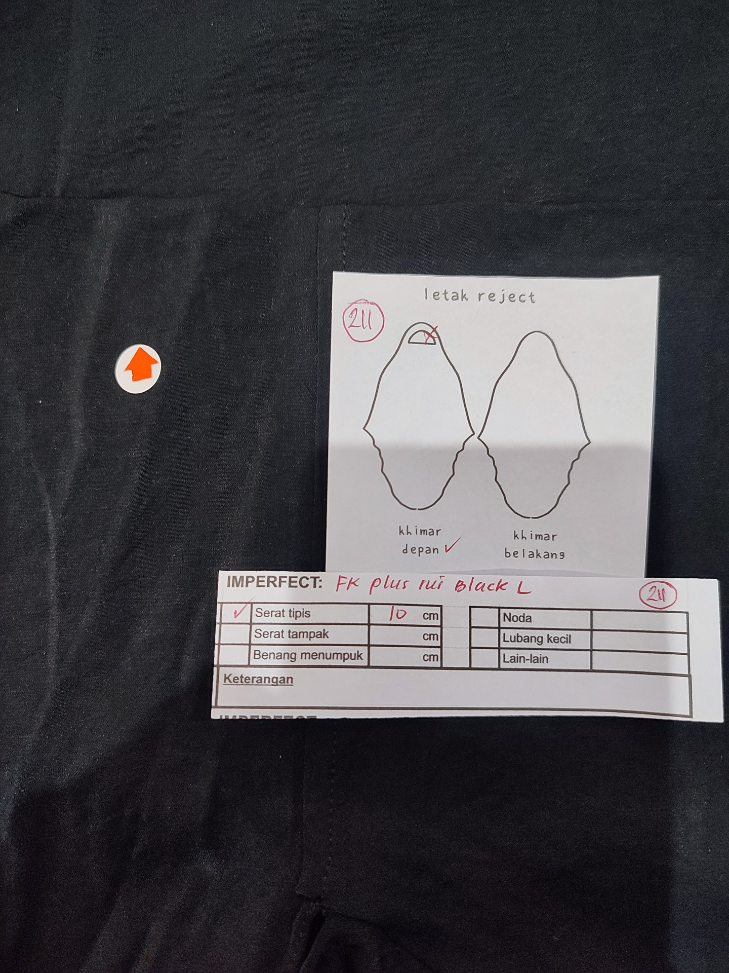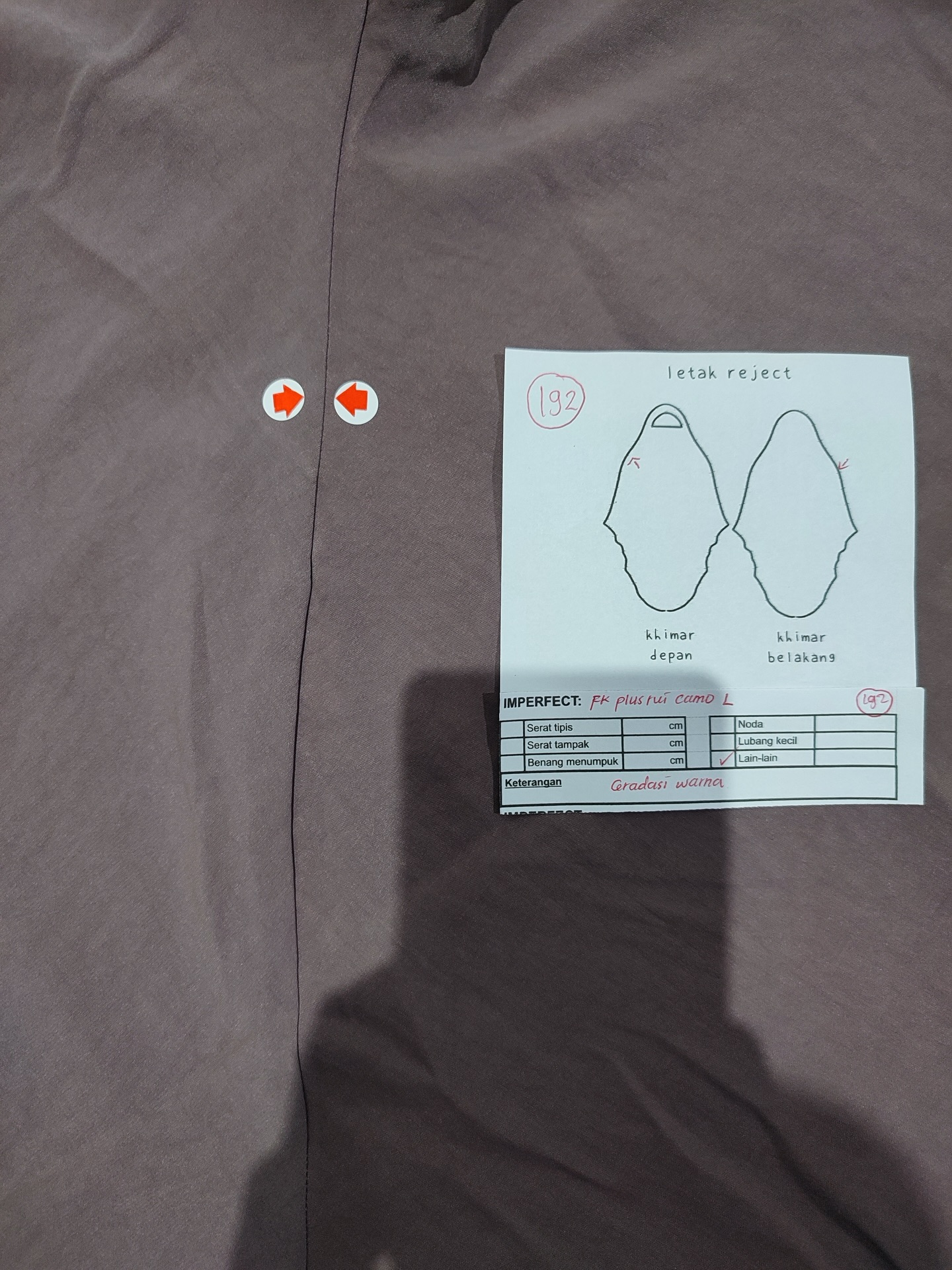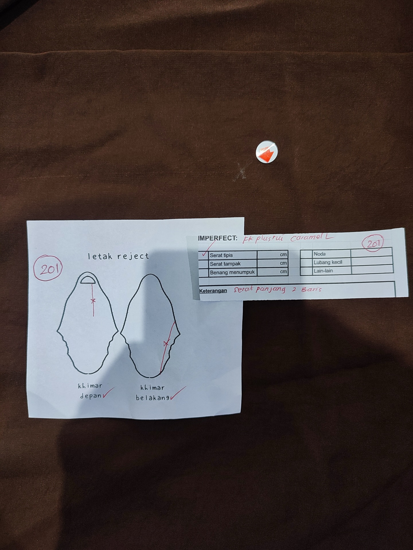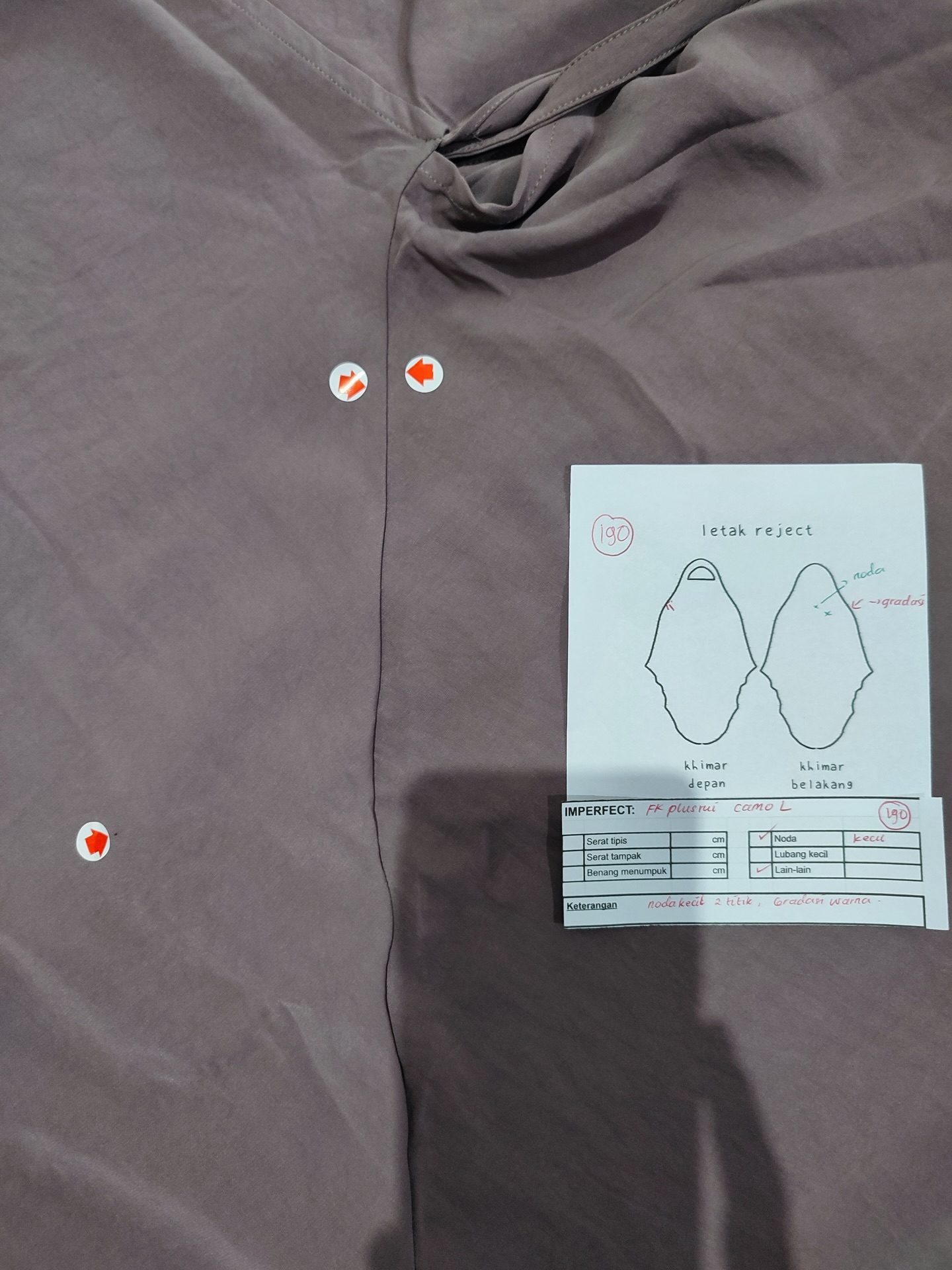 photo includes code, color, size, and defect details.