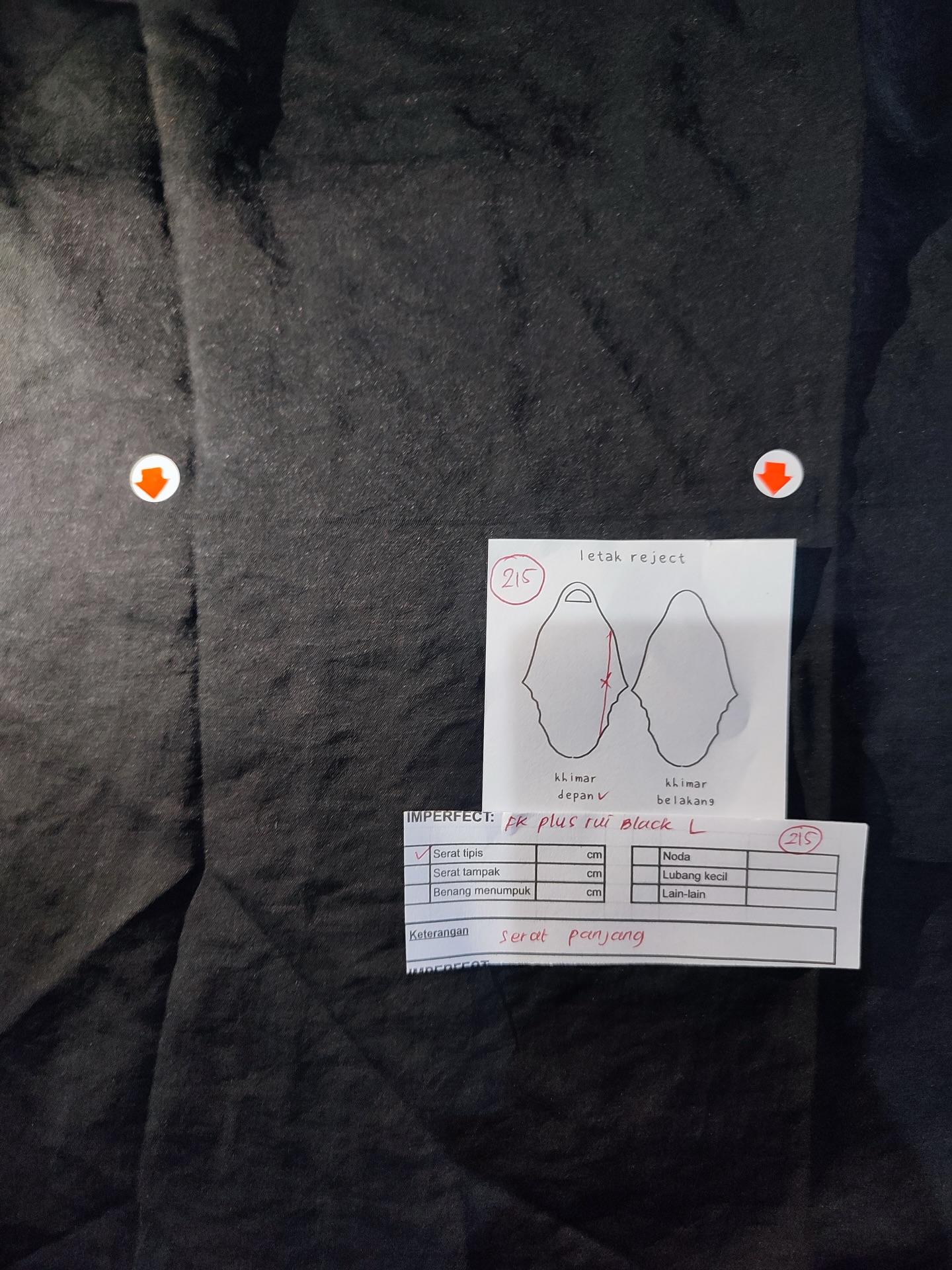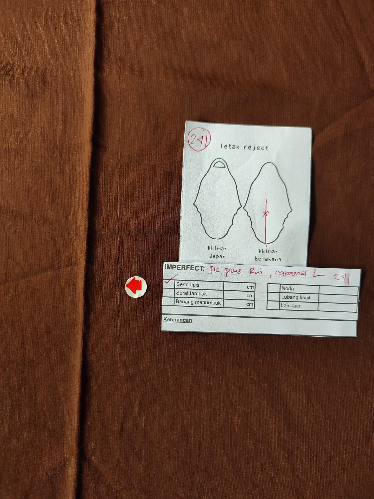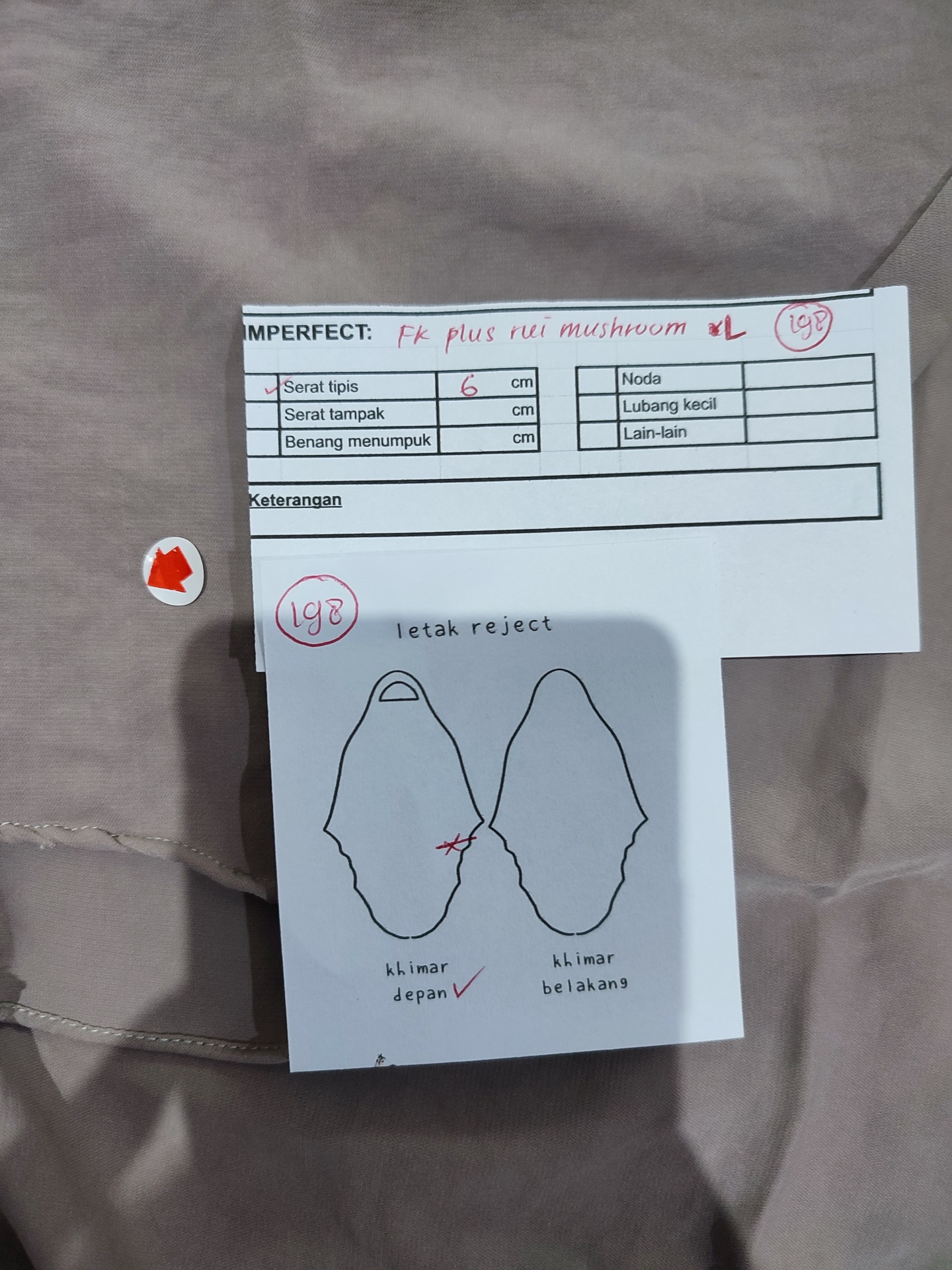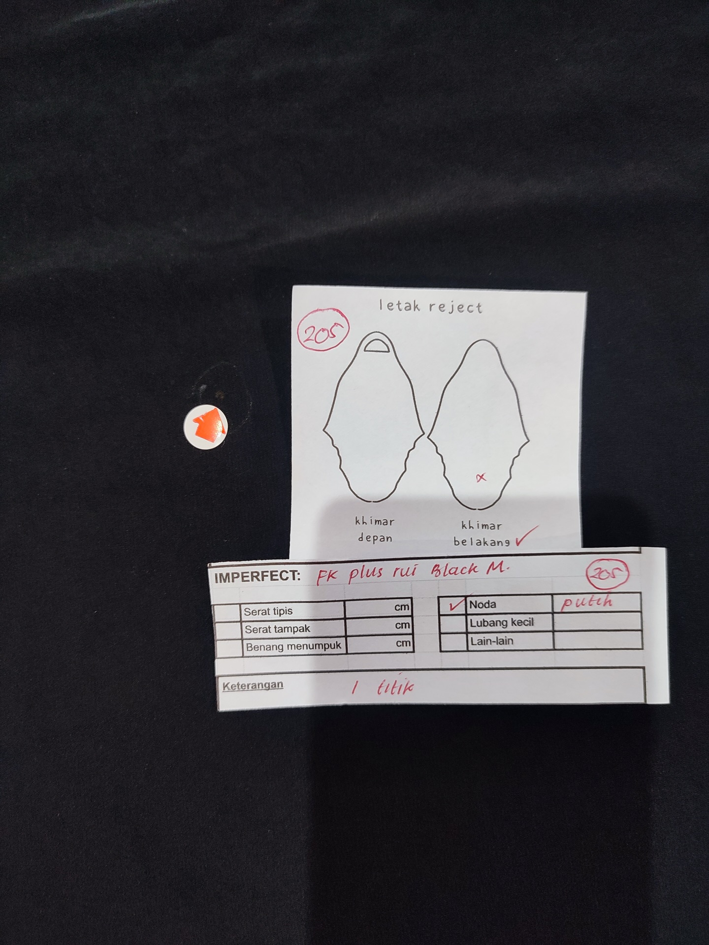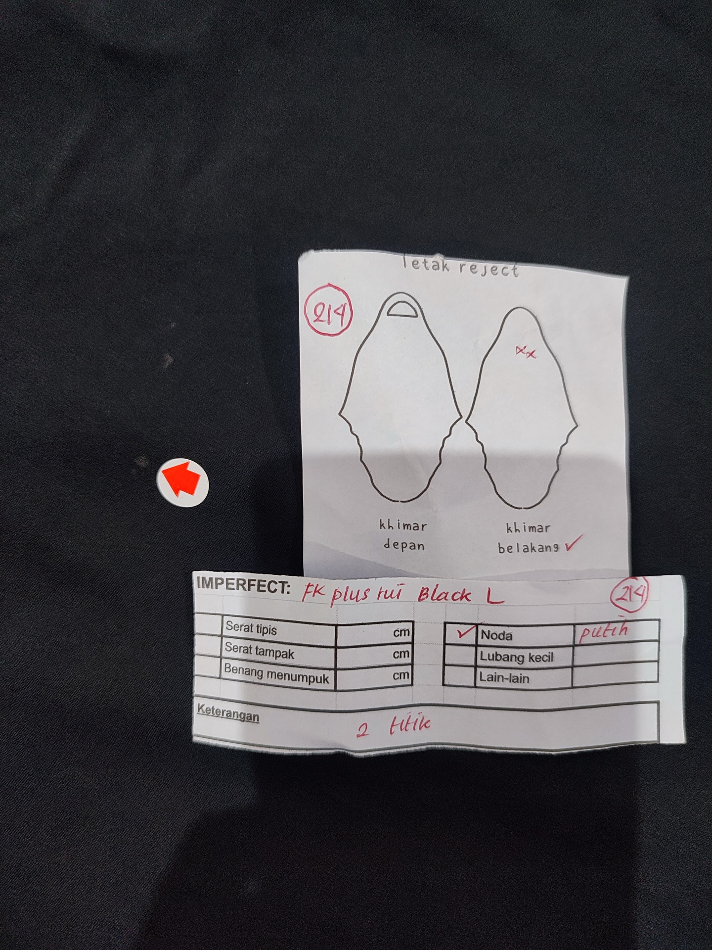 photo includes code, color, size, and defect details.