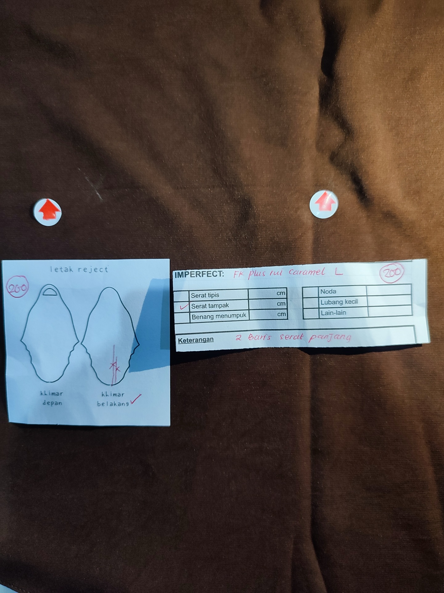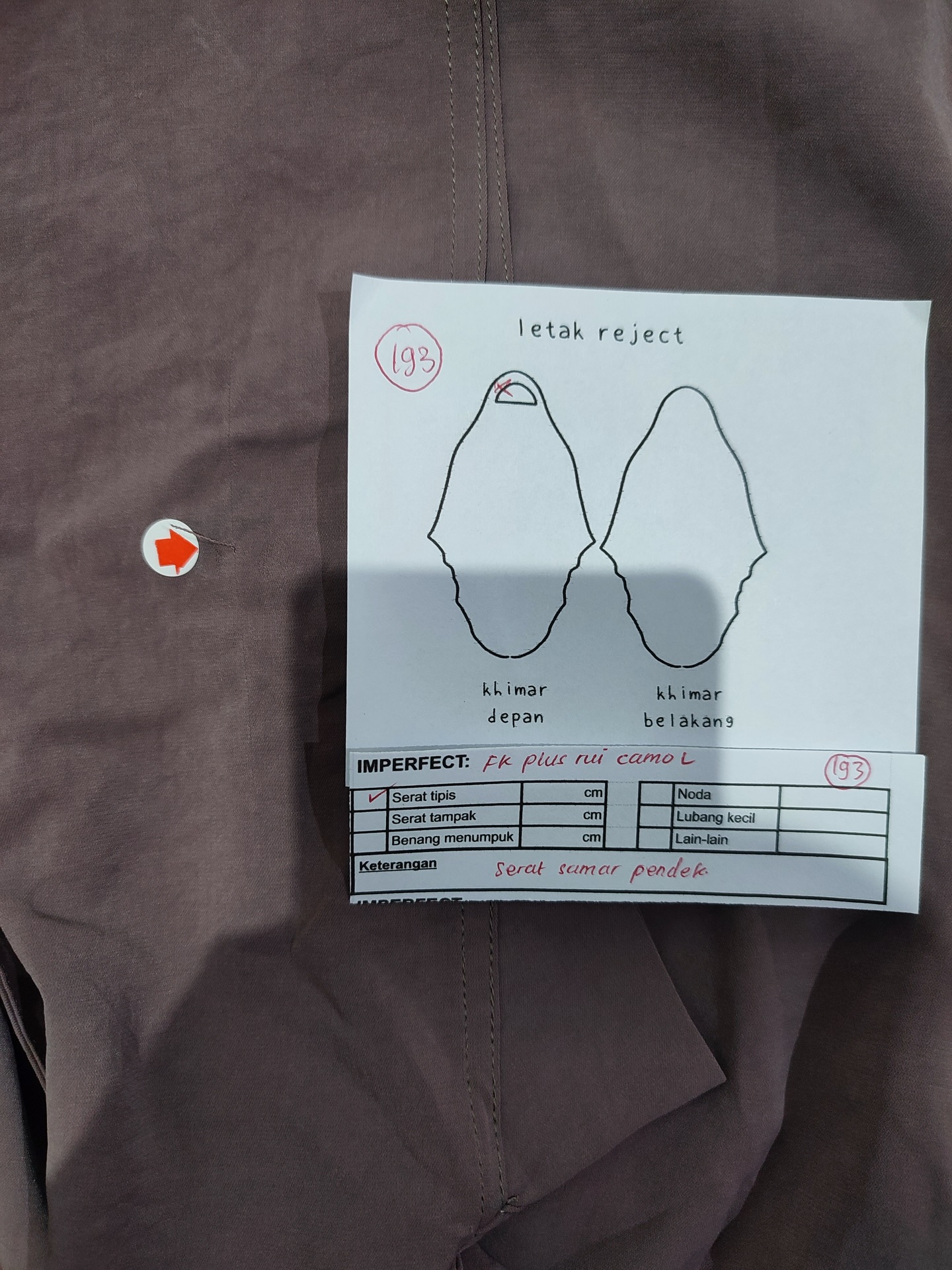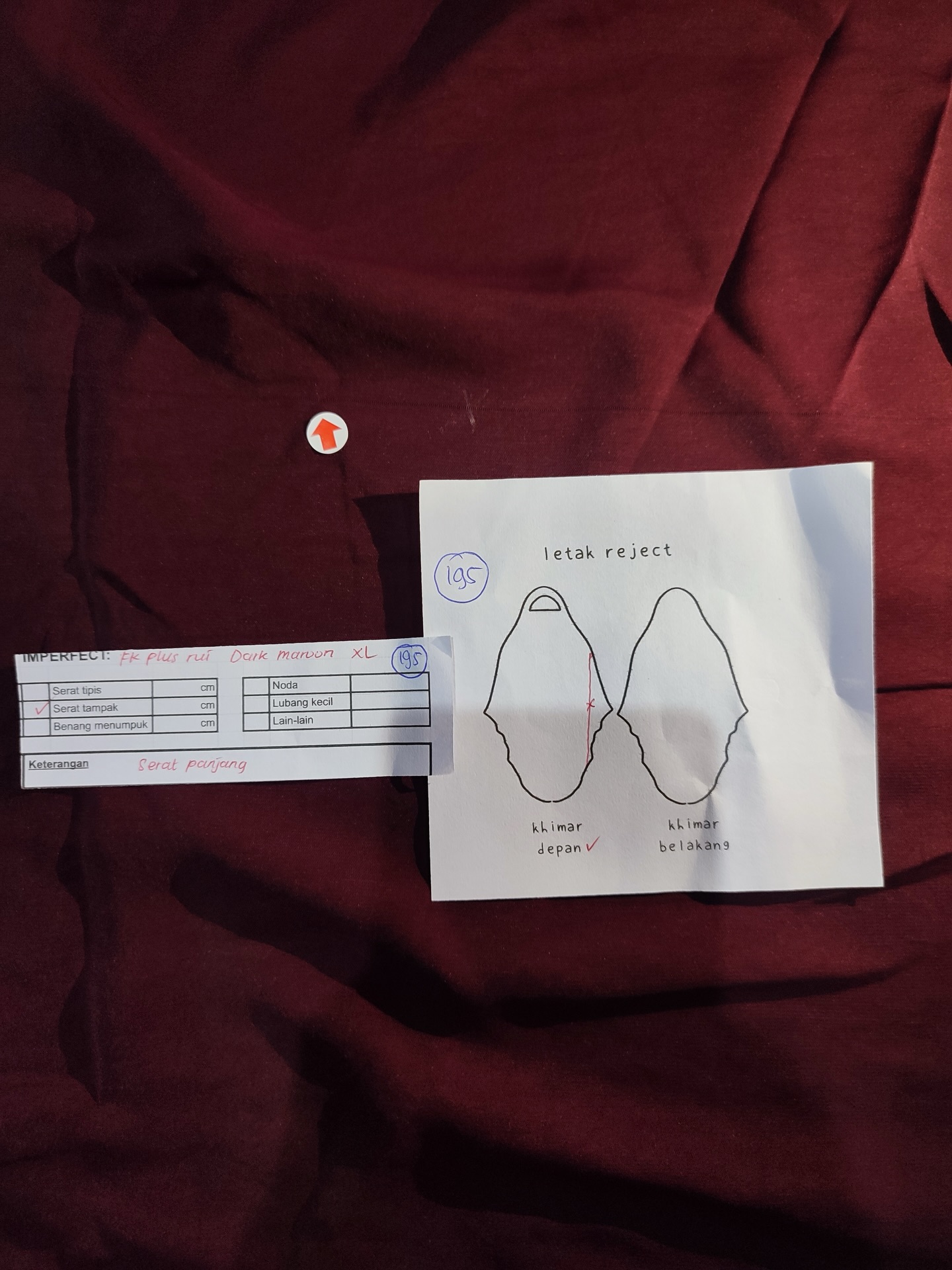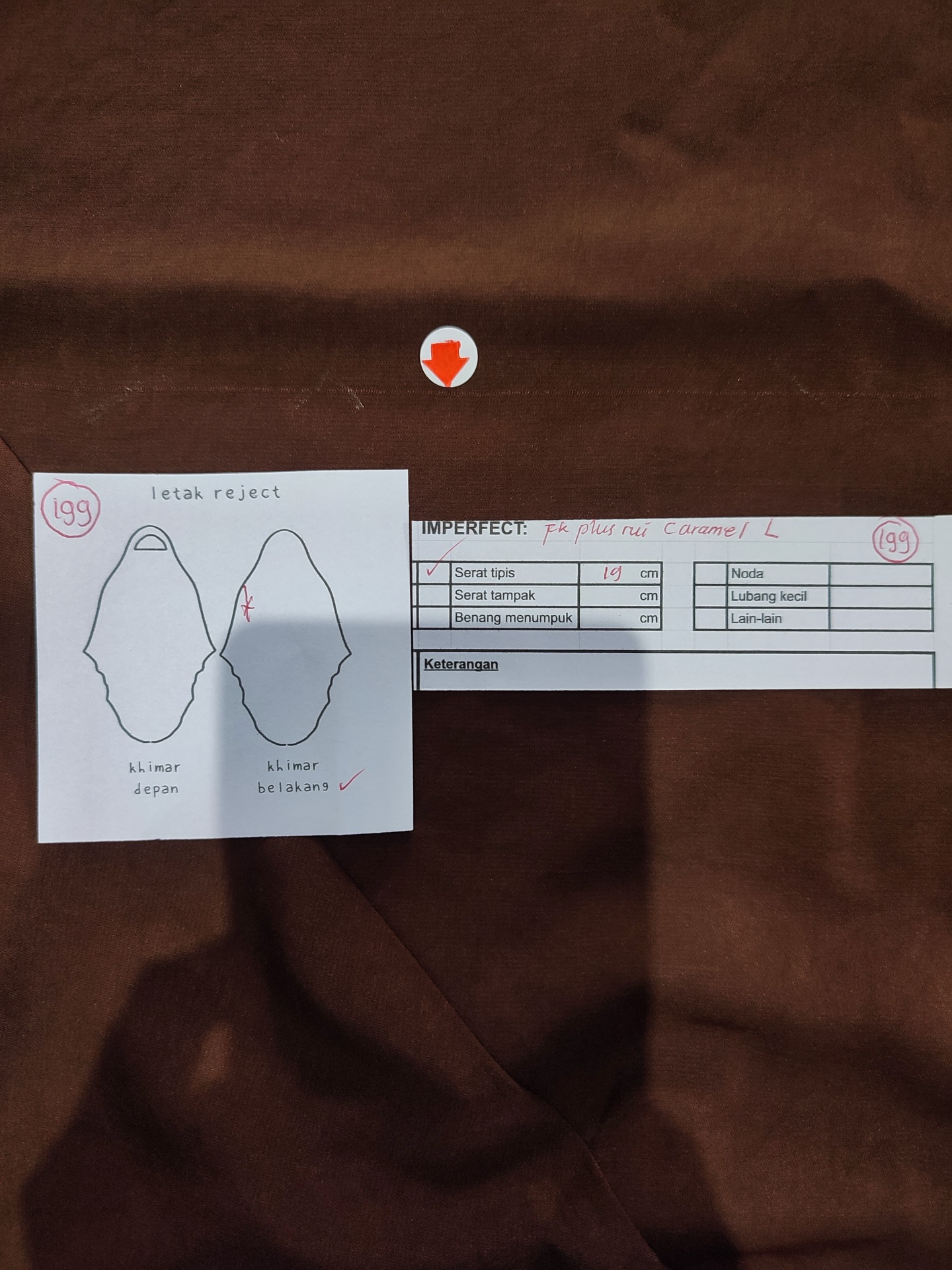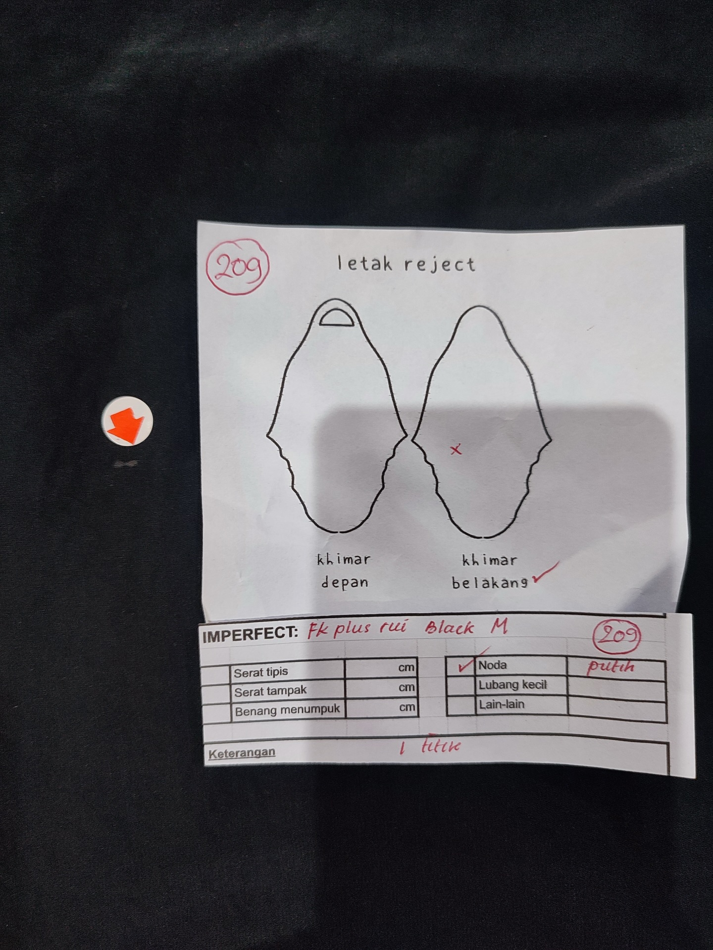 photo includes code, color, size, and defect details.