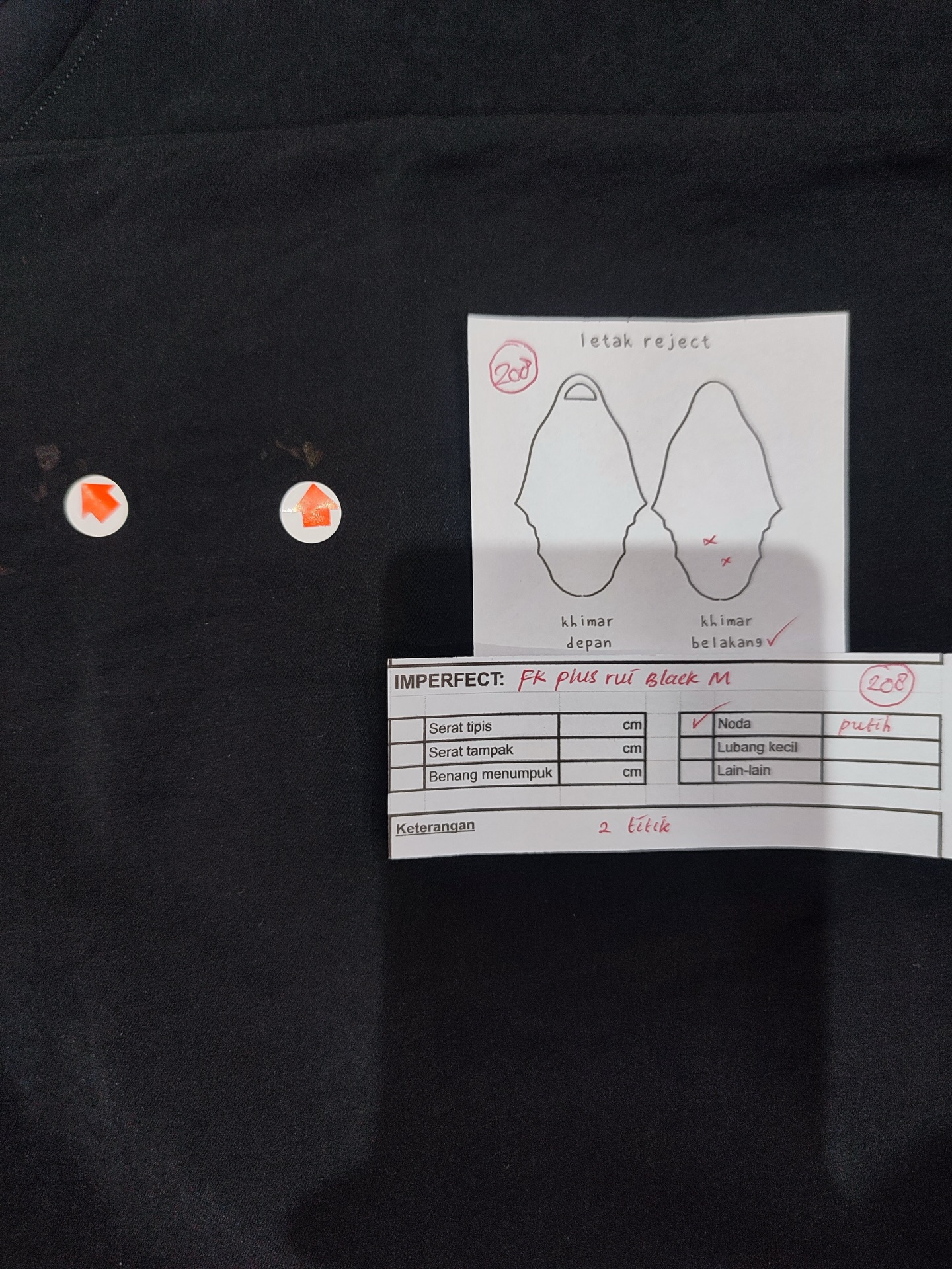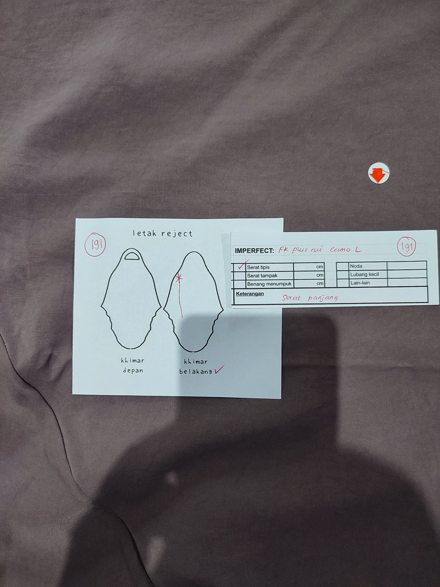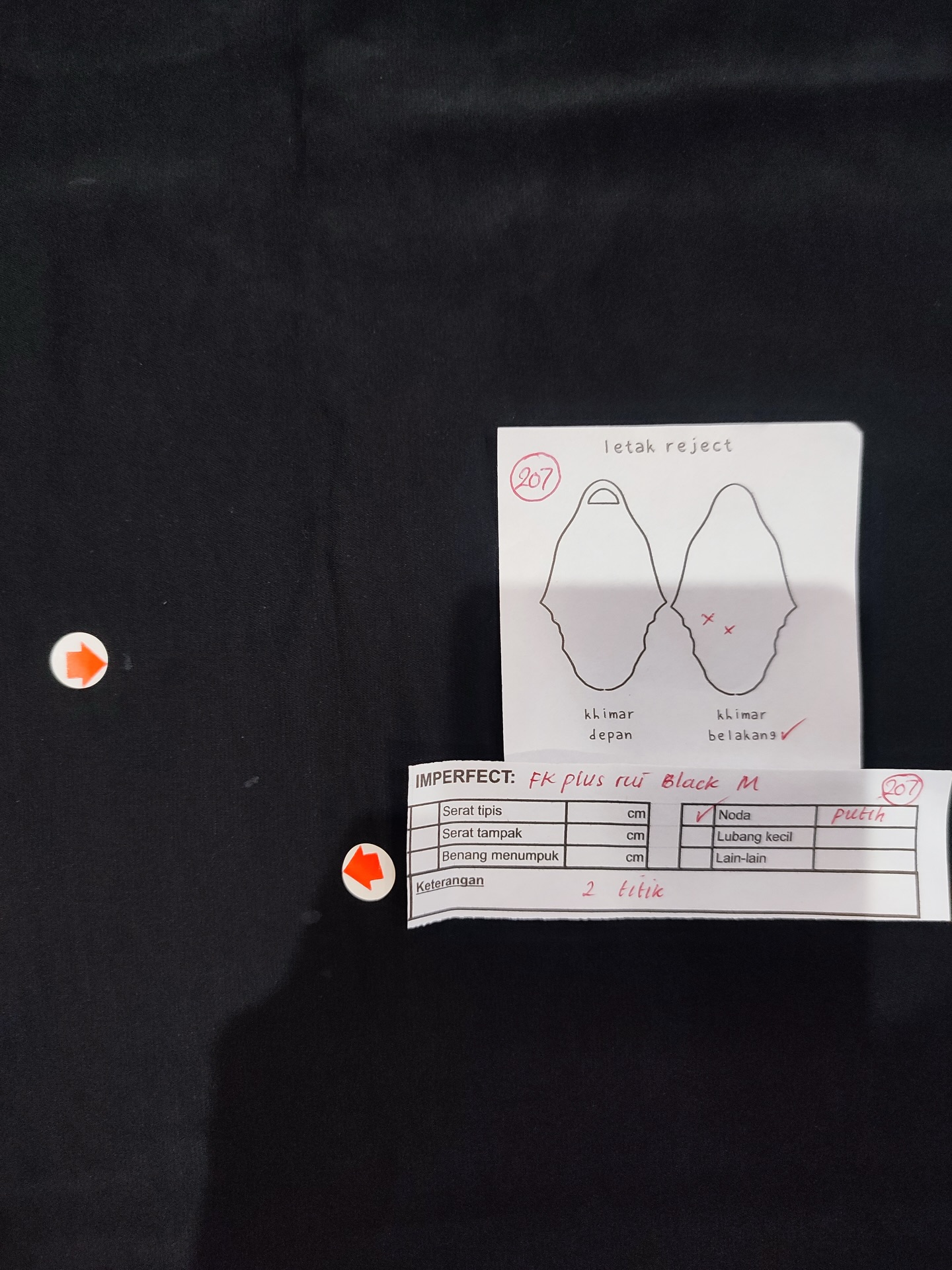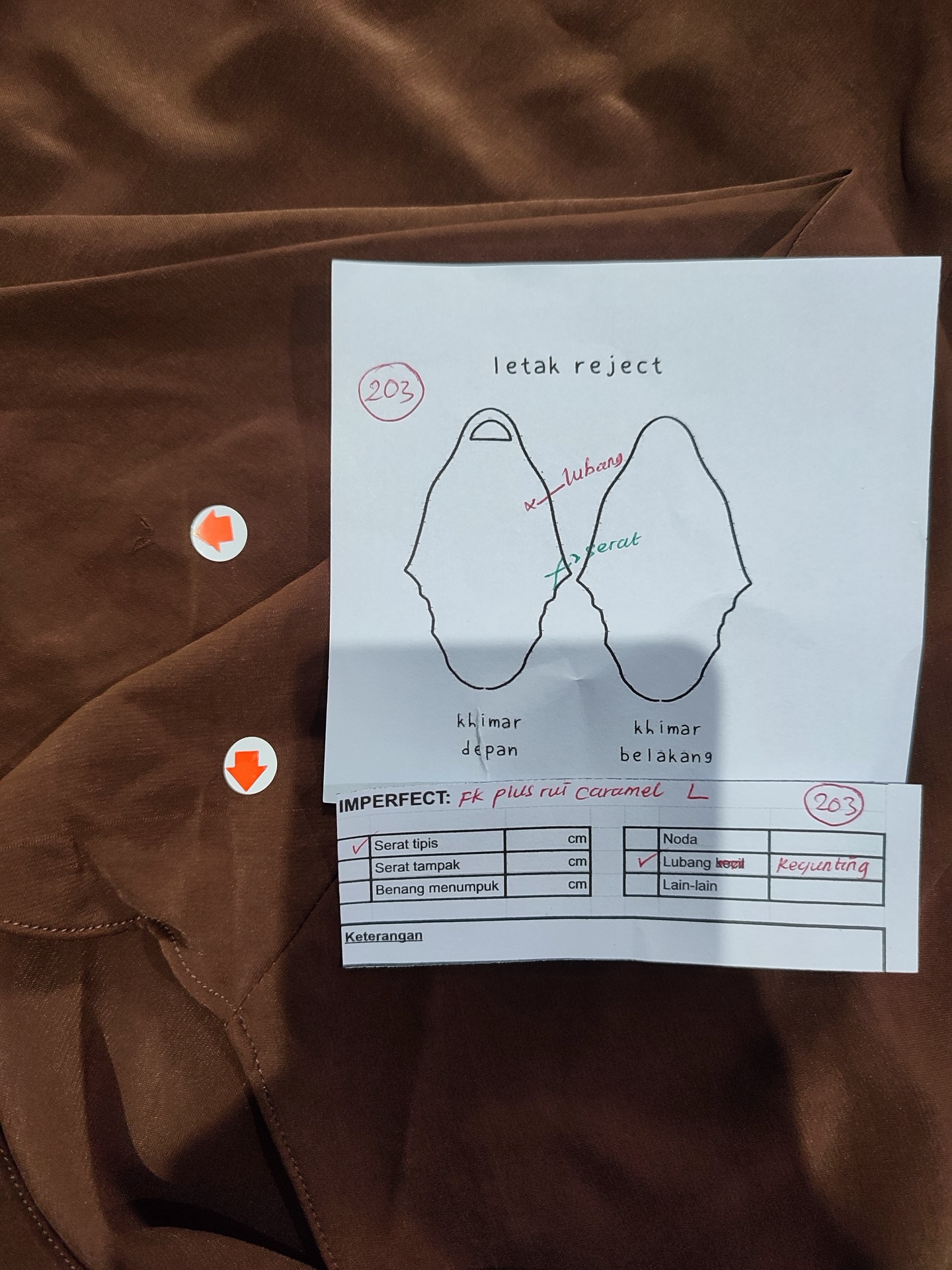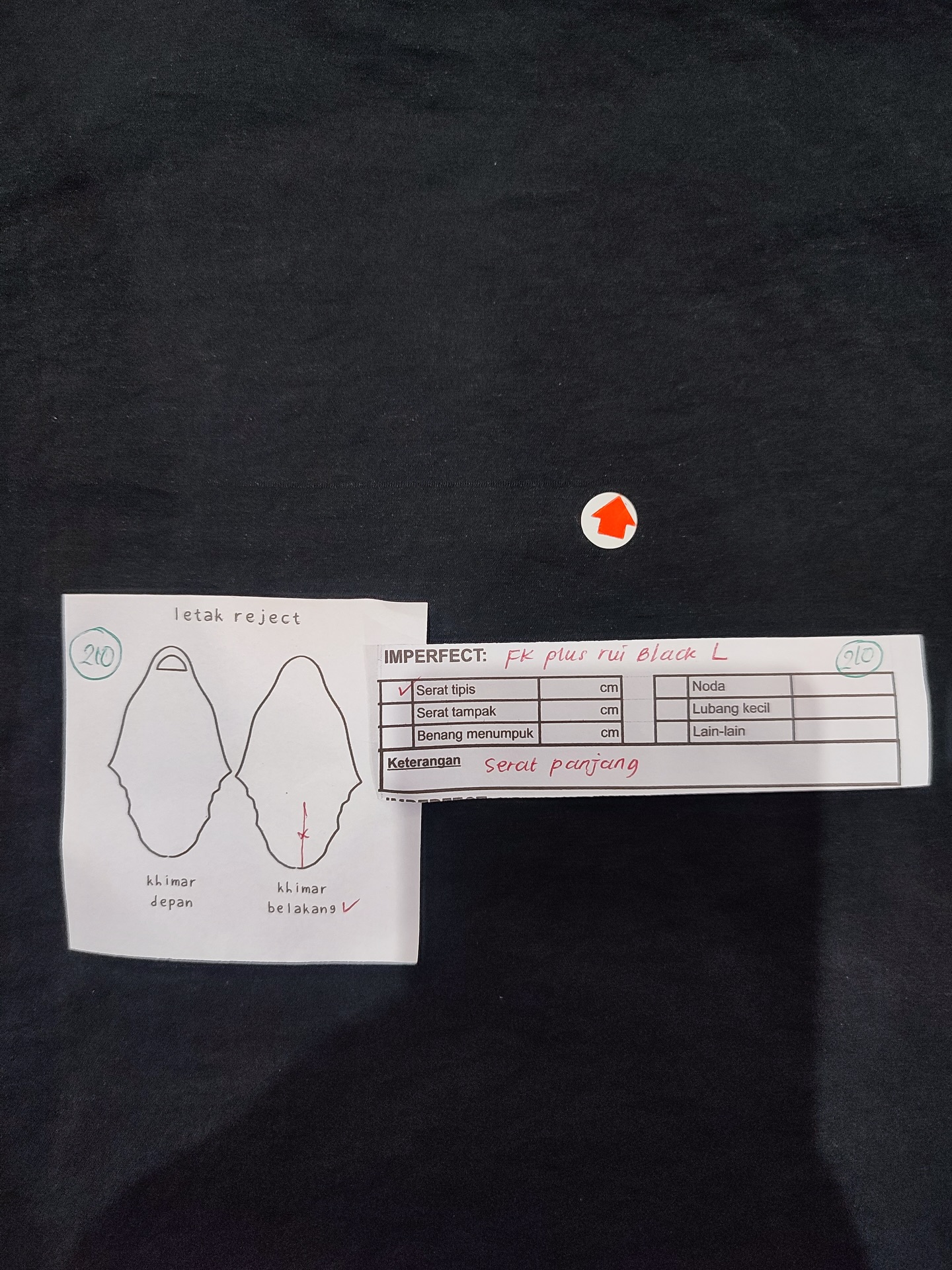 photo includes code, color, size, and defect details.