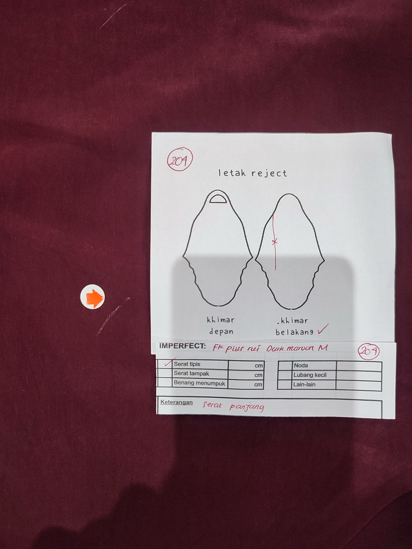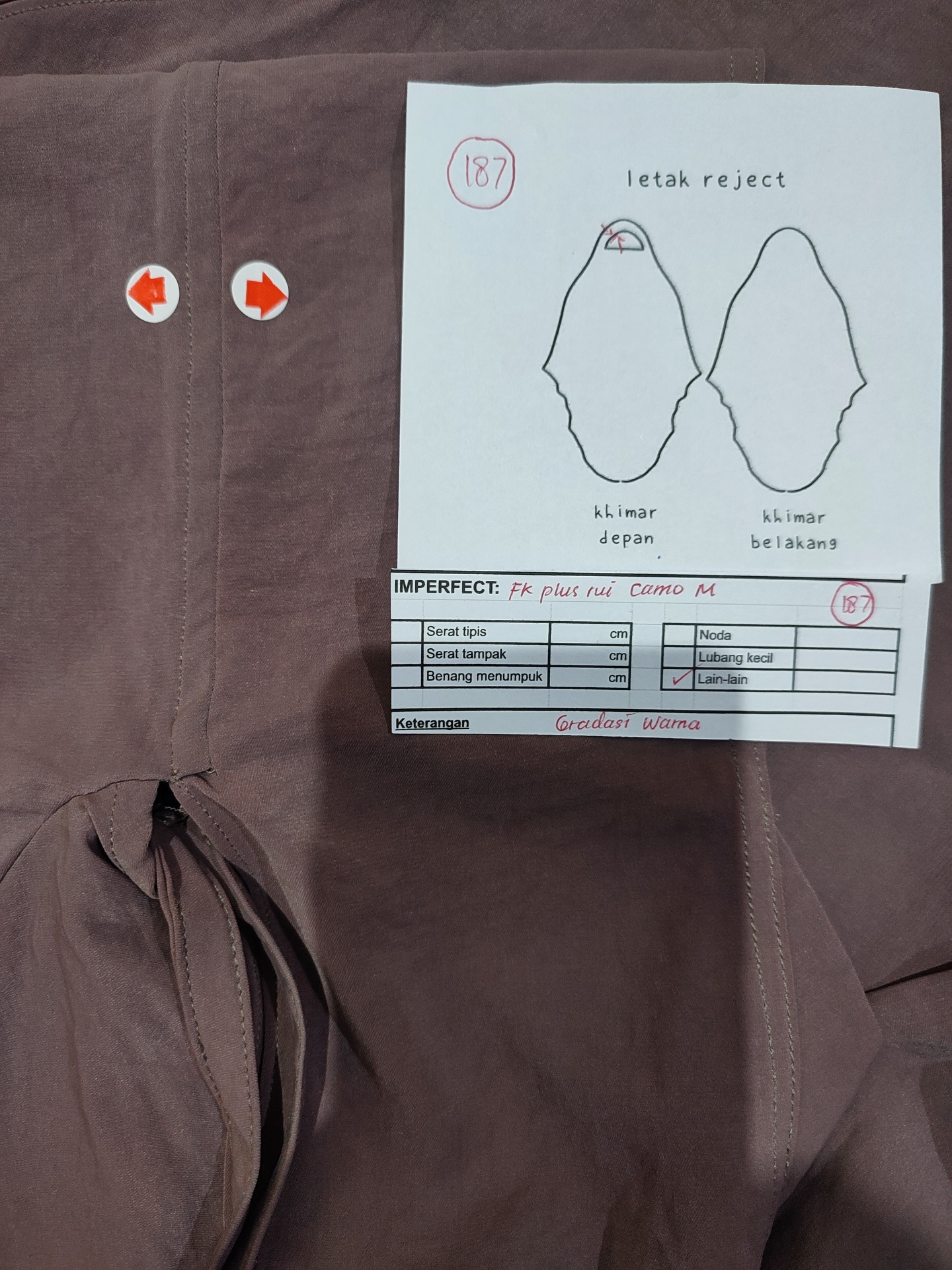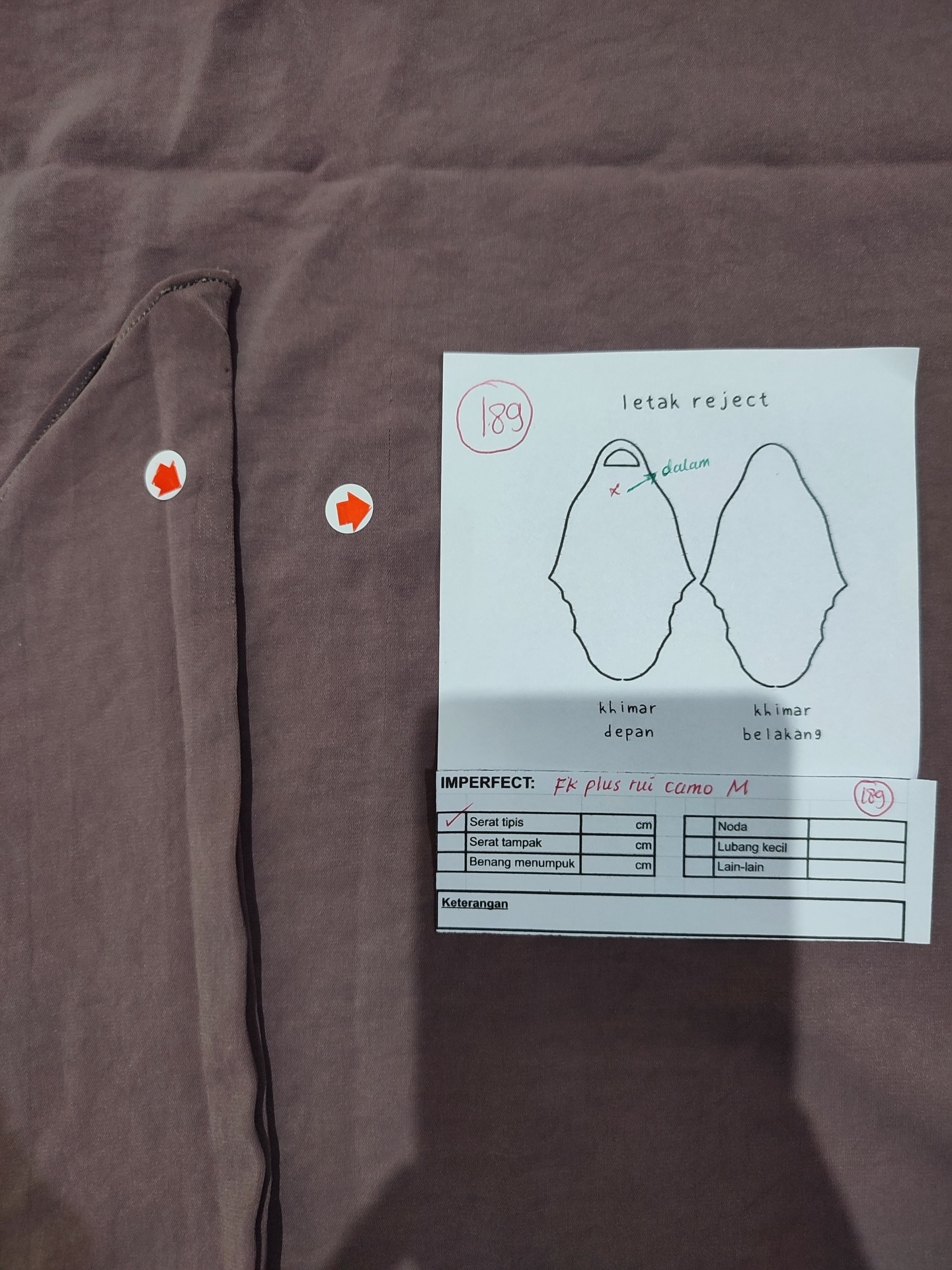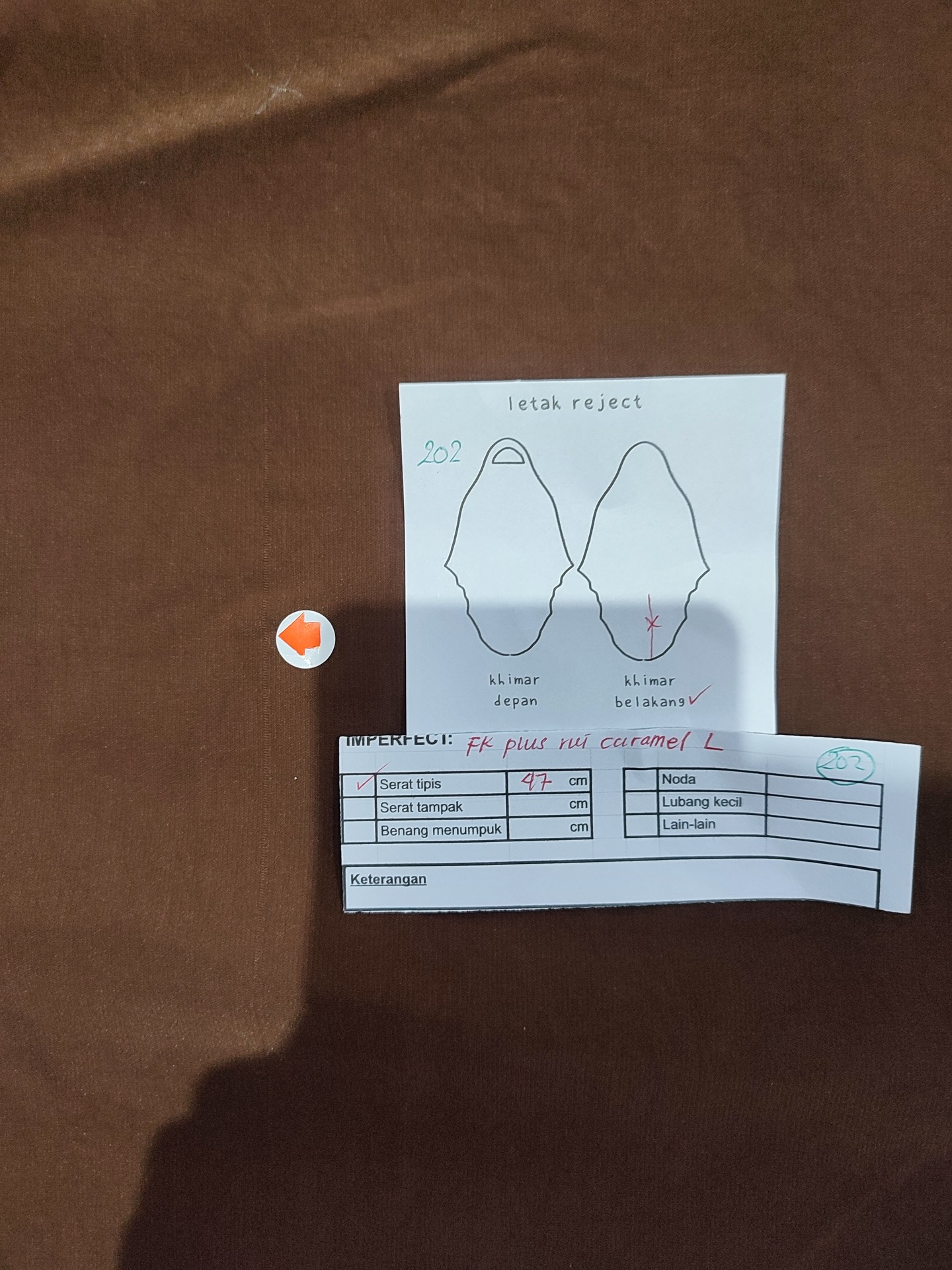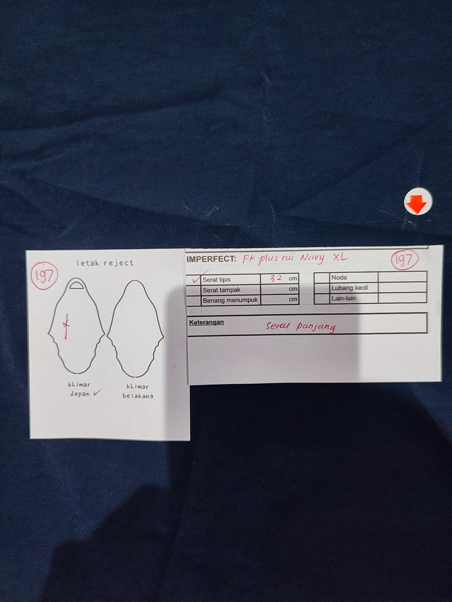 photo includes code, color, size, and defect details.