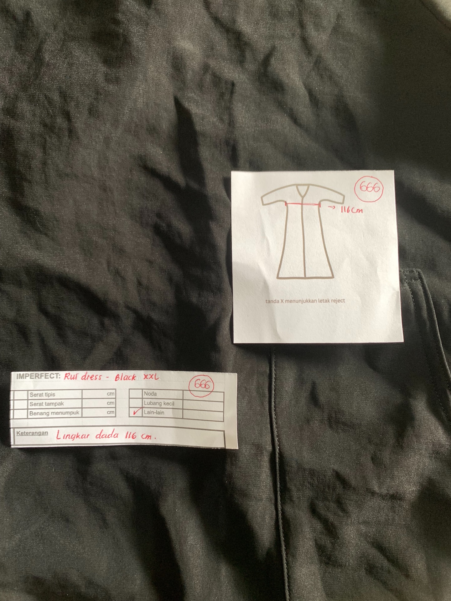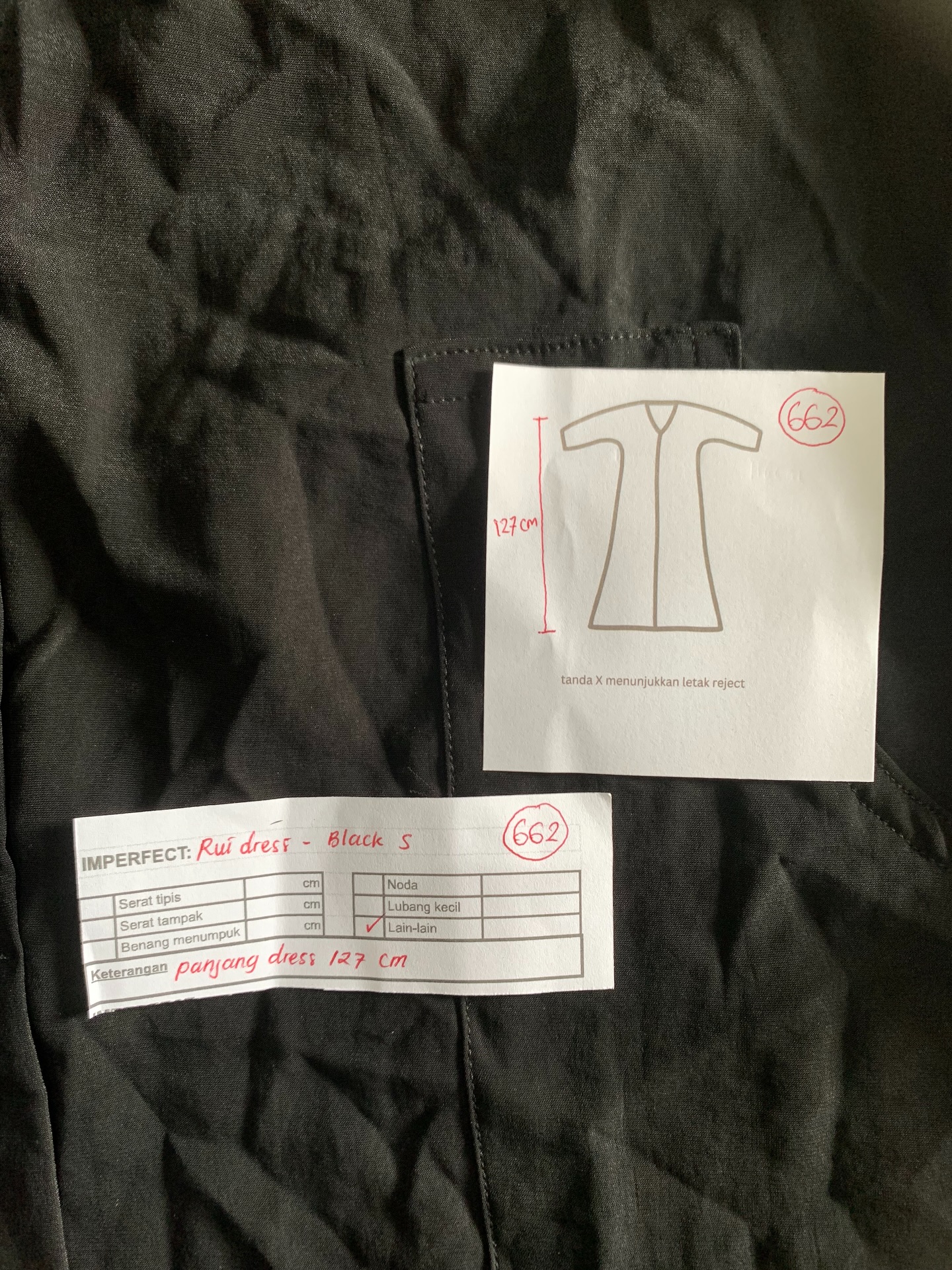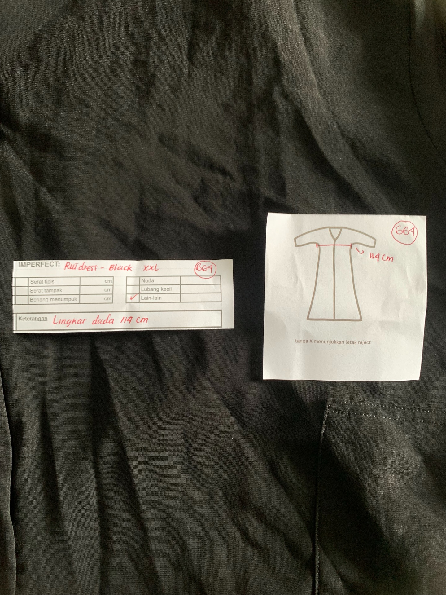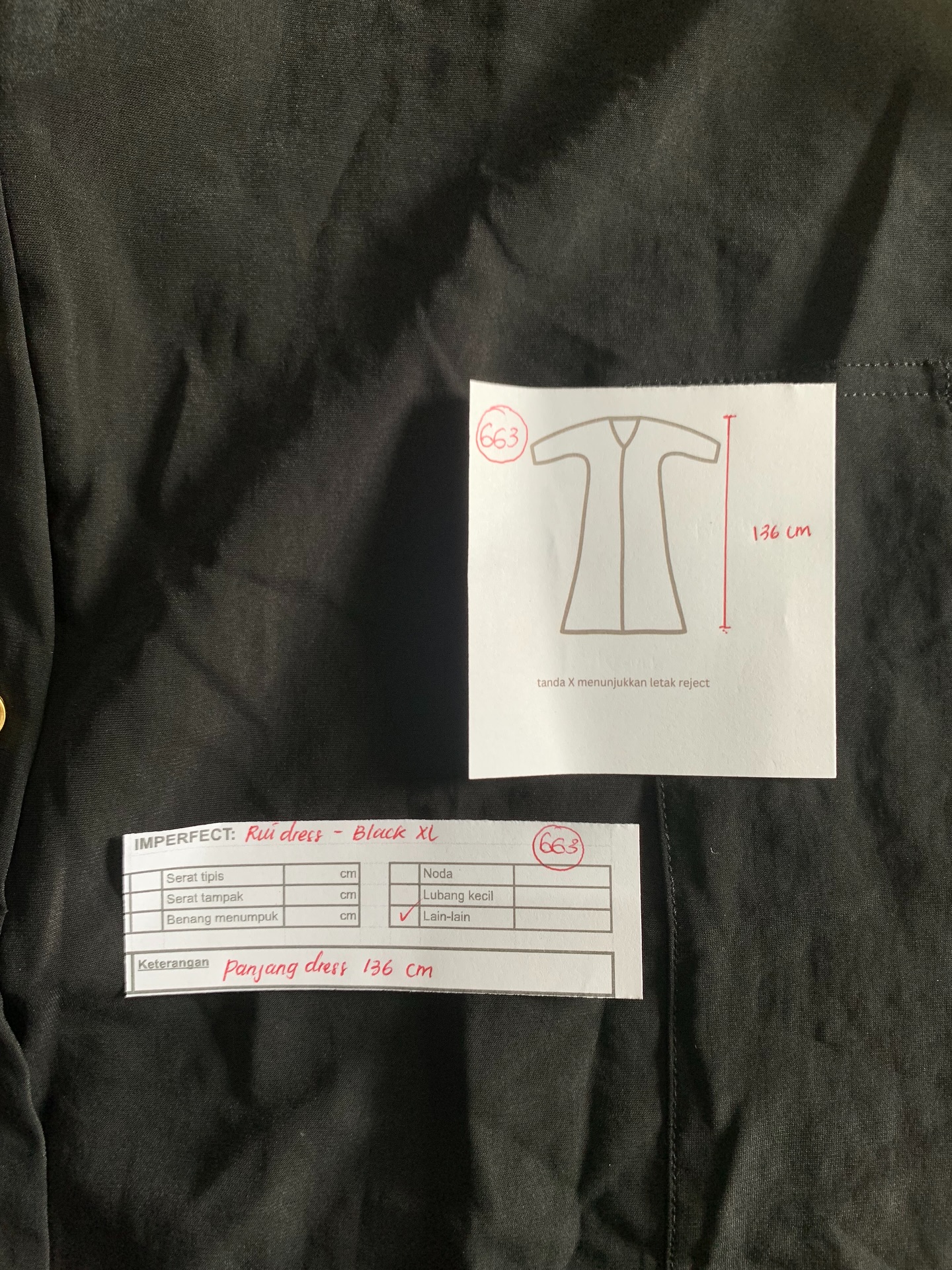 photo includes code, color, size, and defect details.