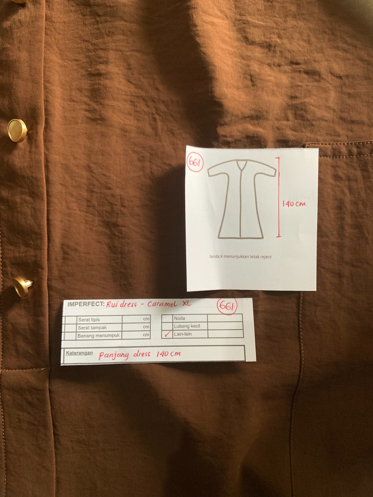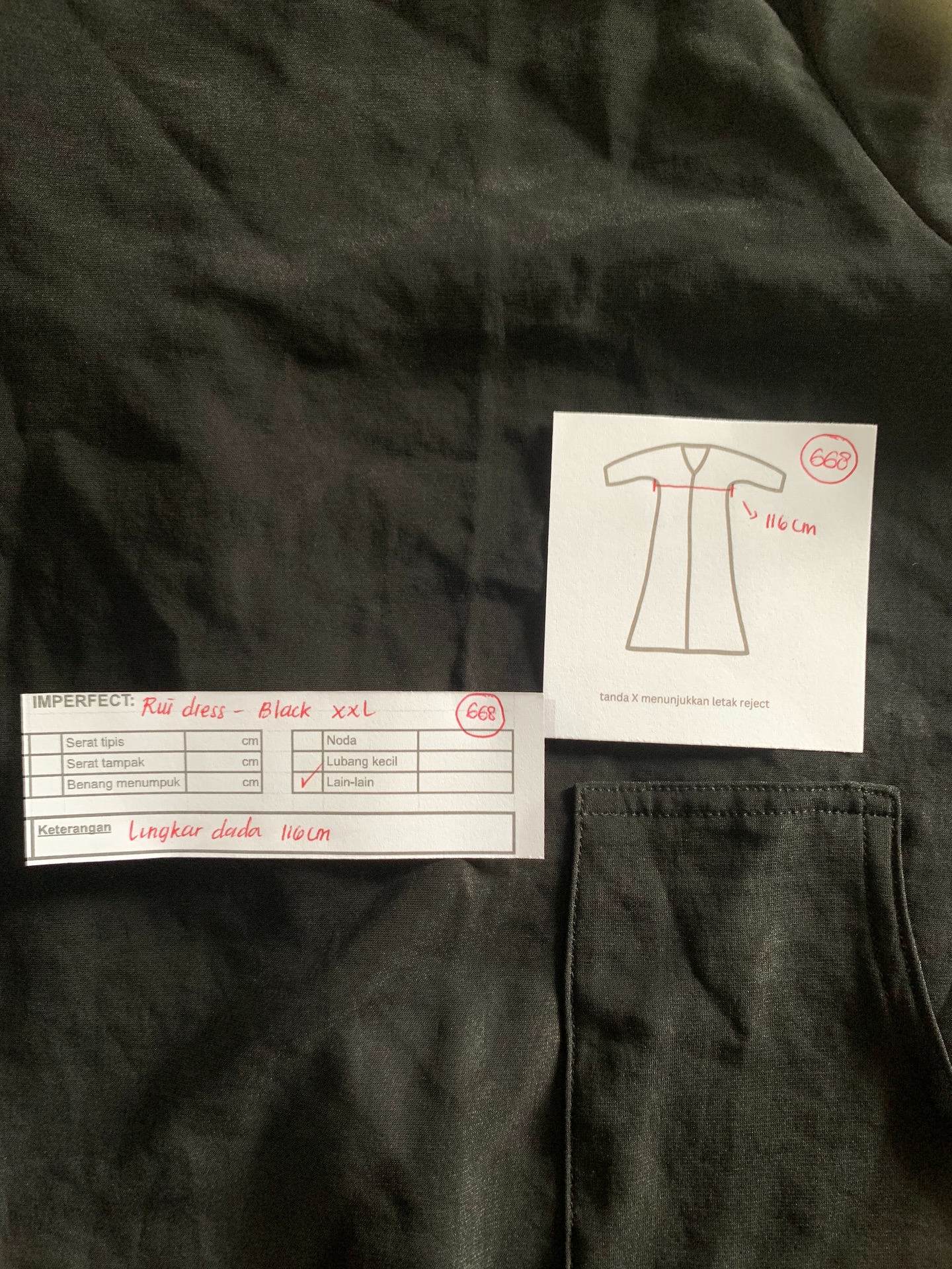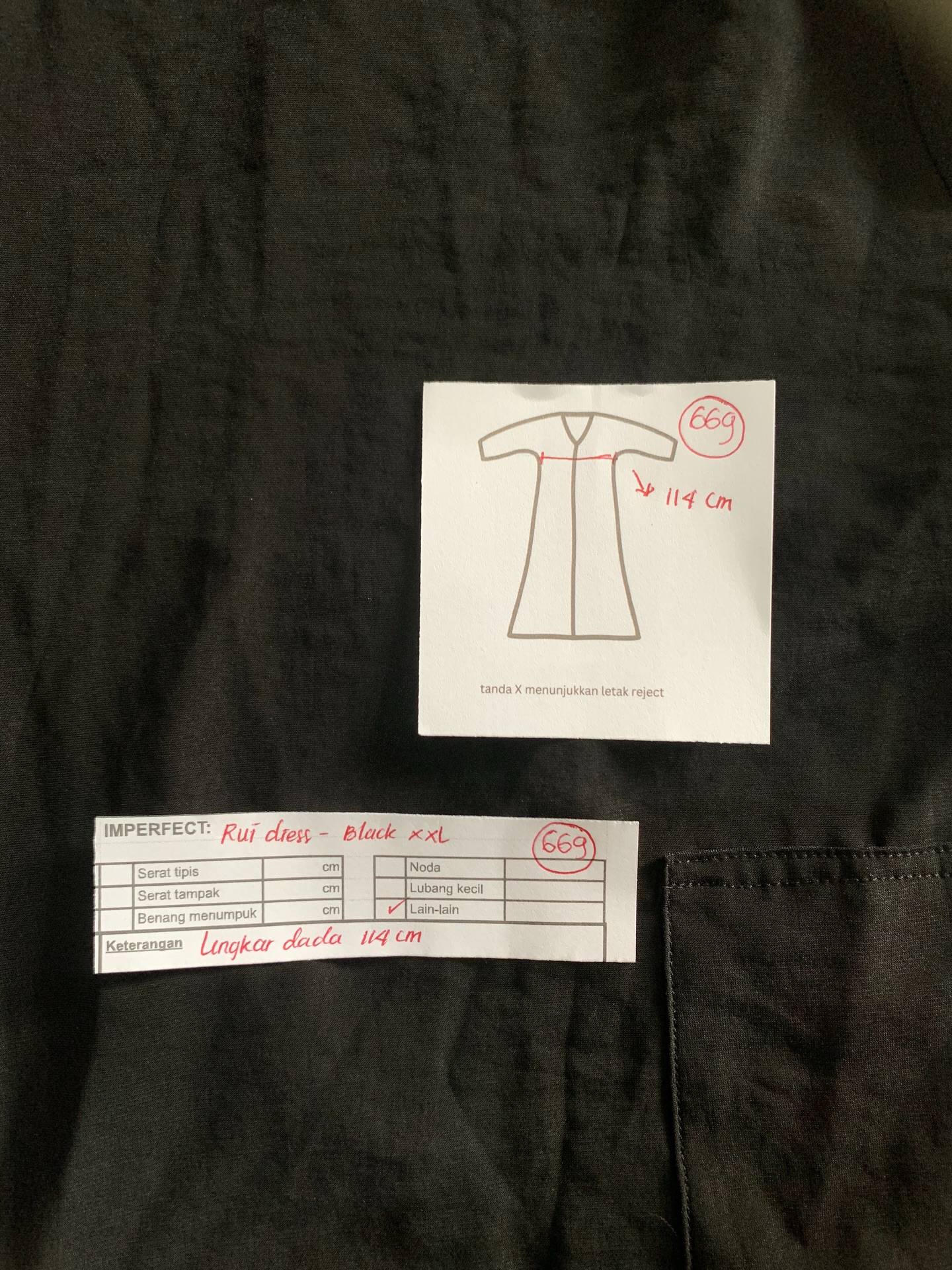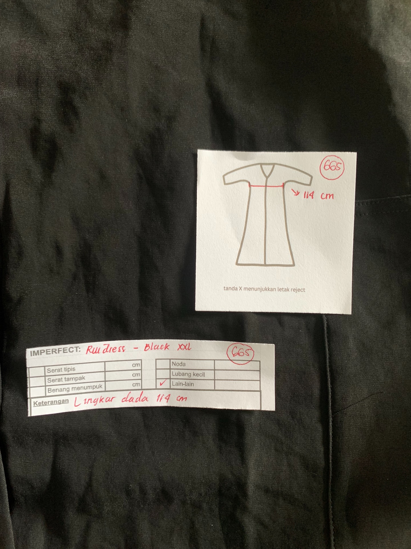 photo includes code, color, size, and defect details.