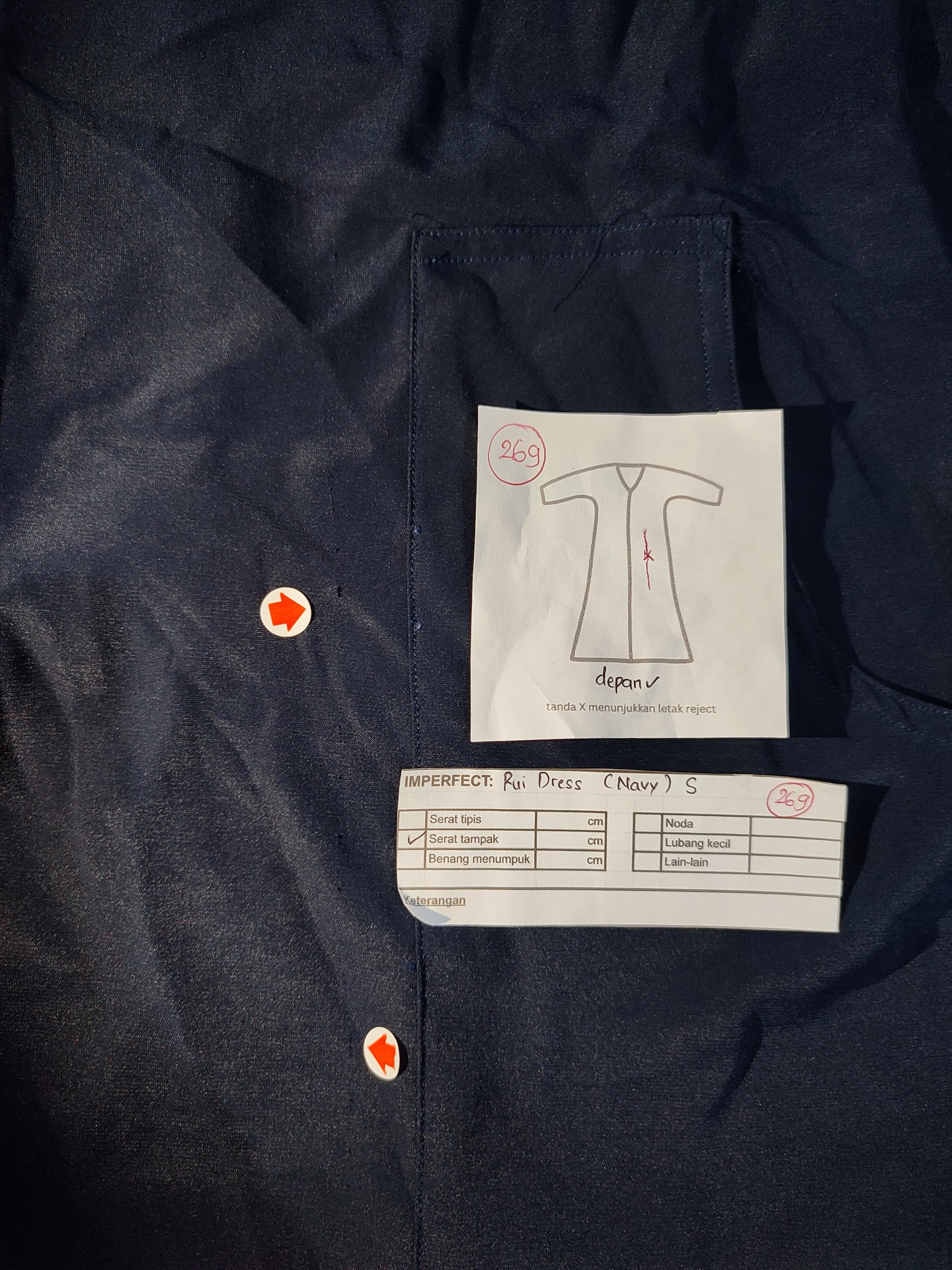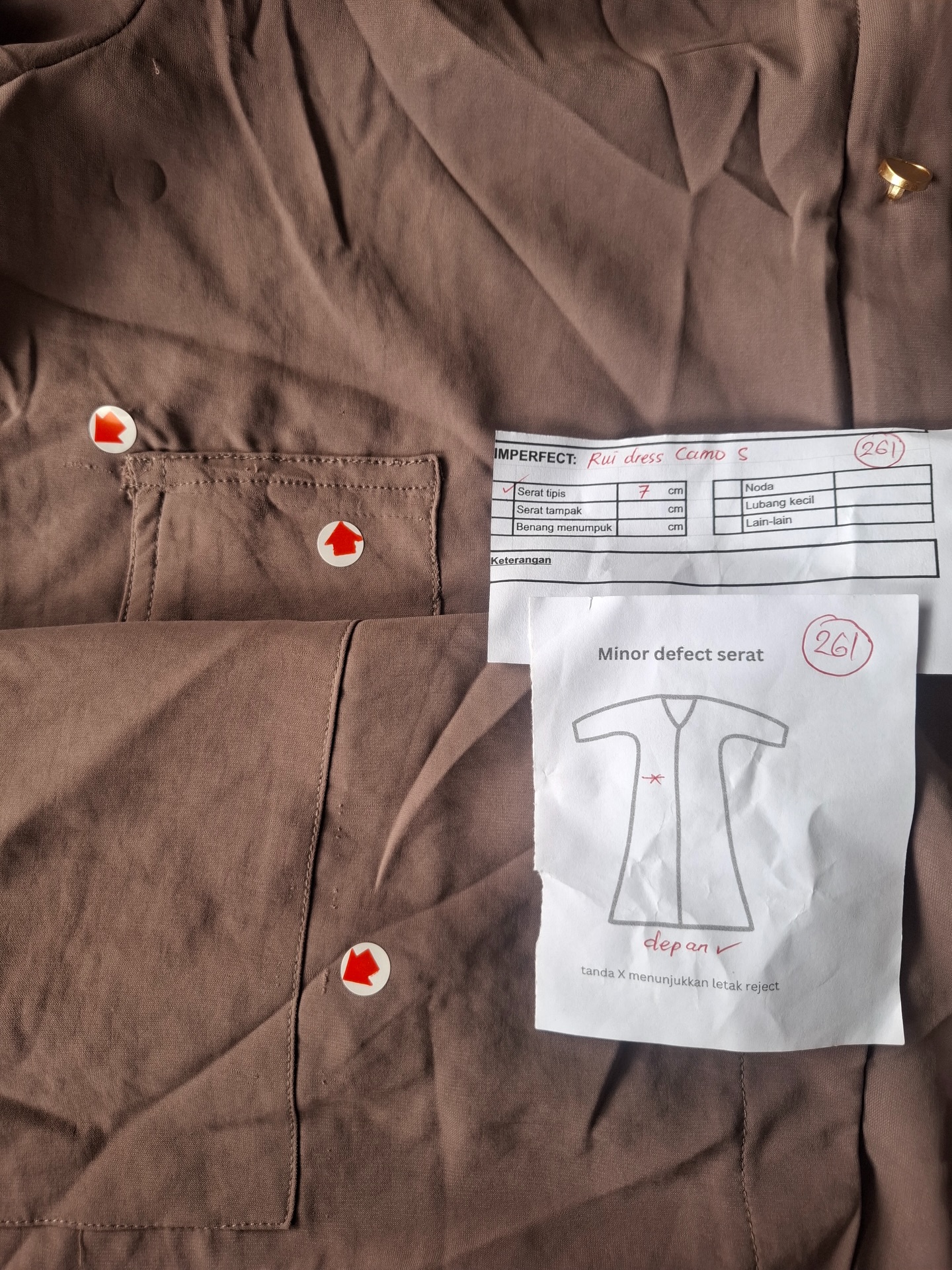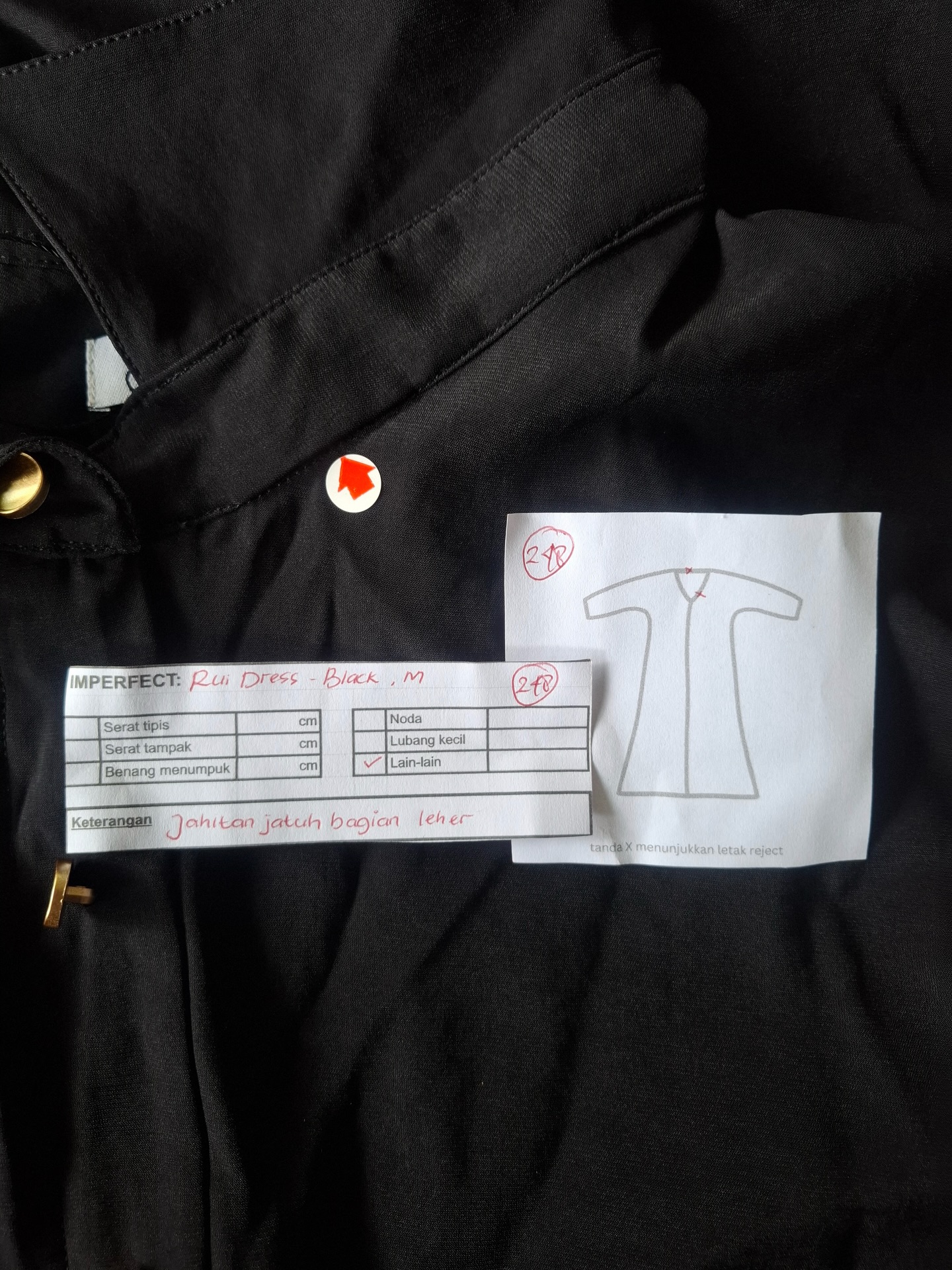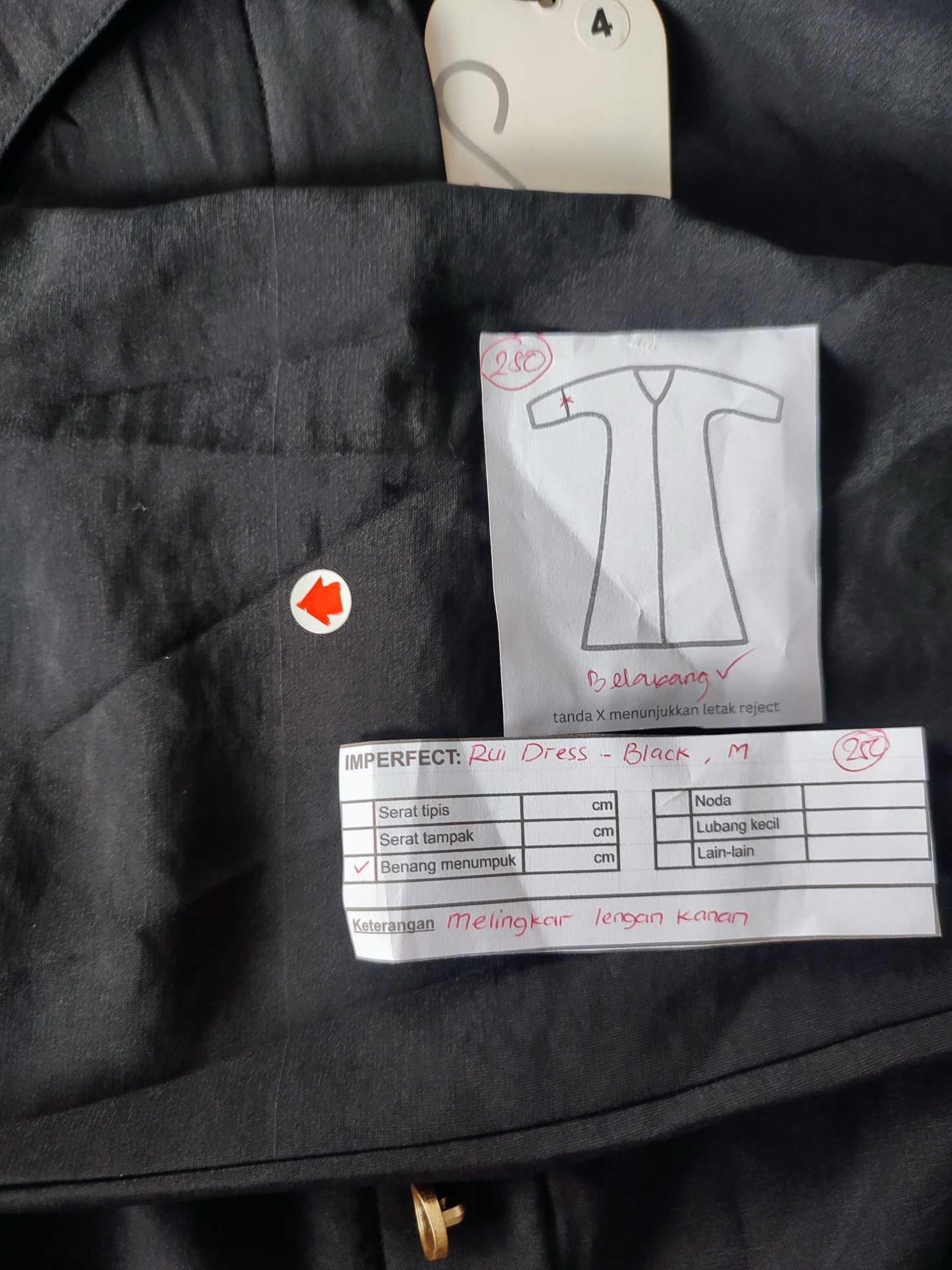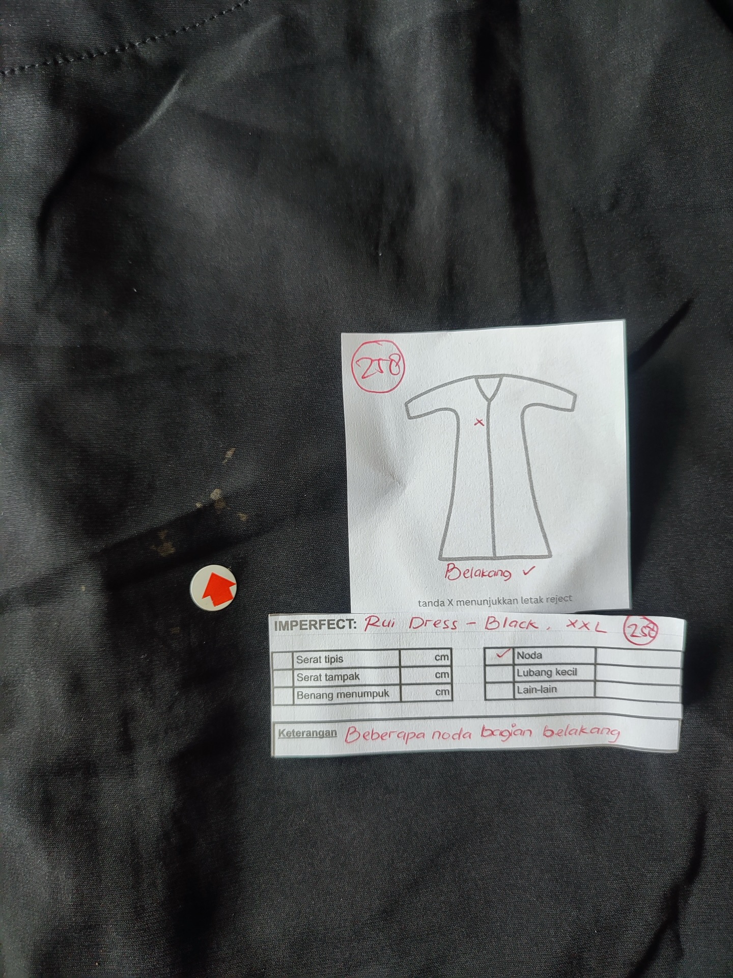 photo includes code, color, size, and defect details.