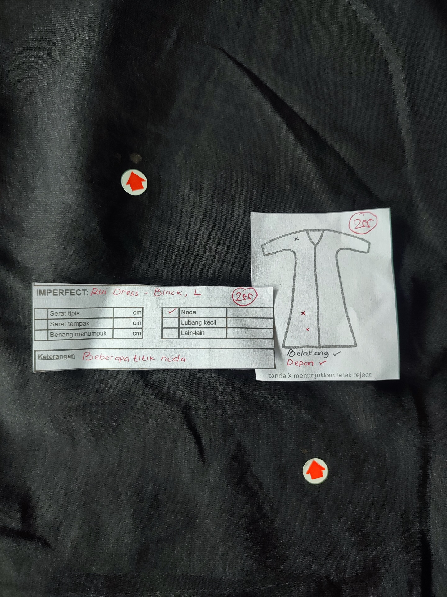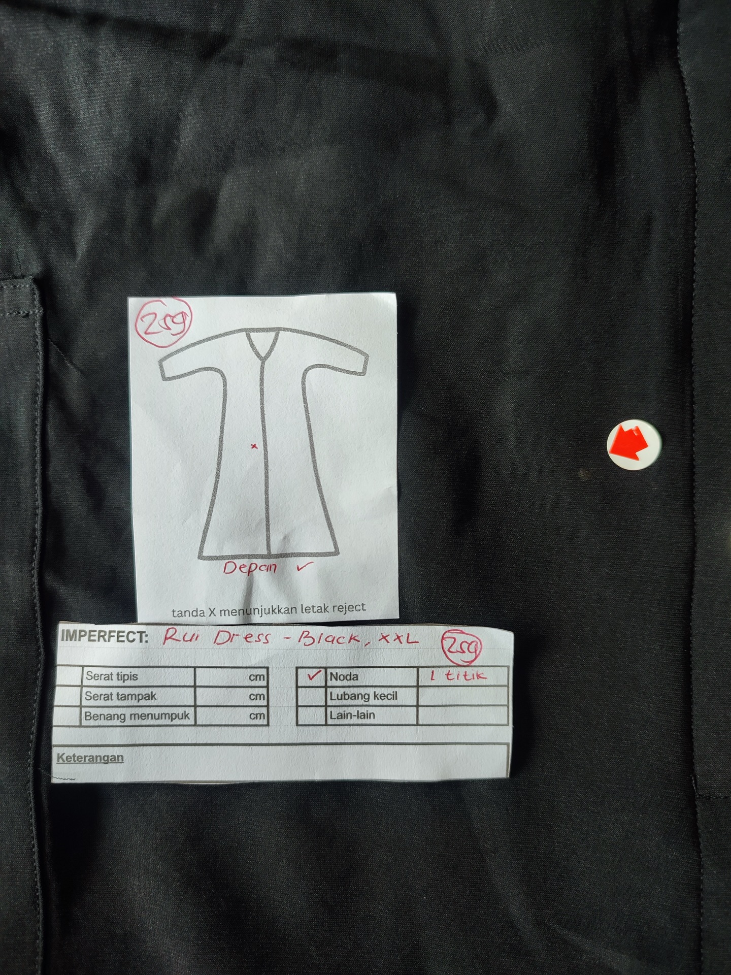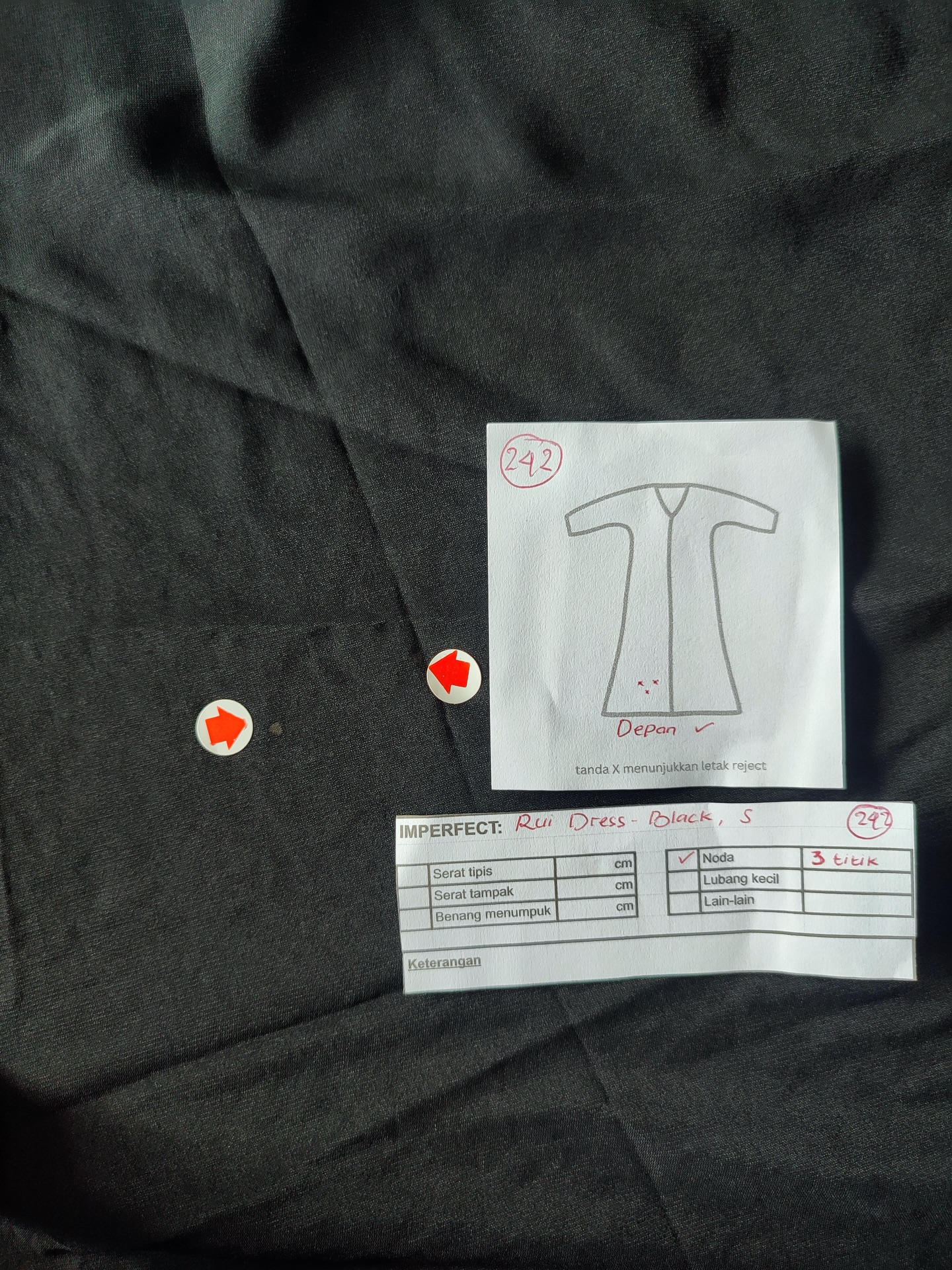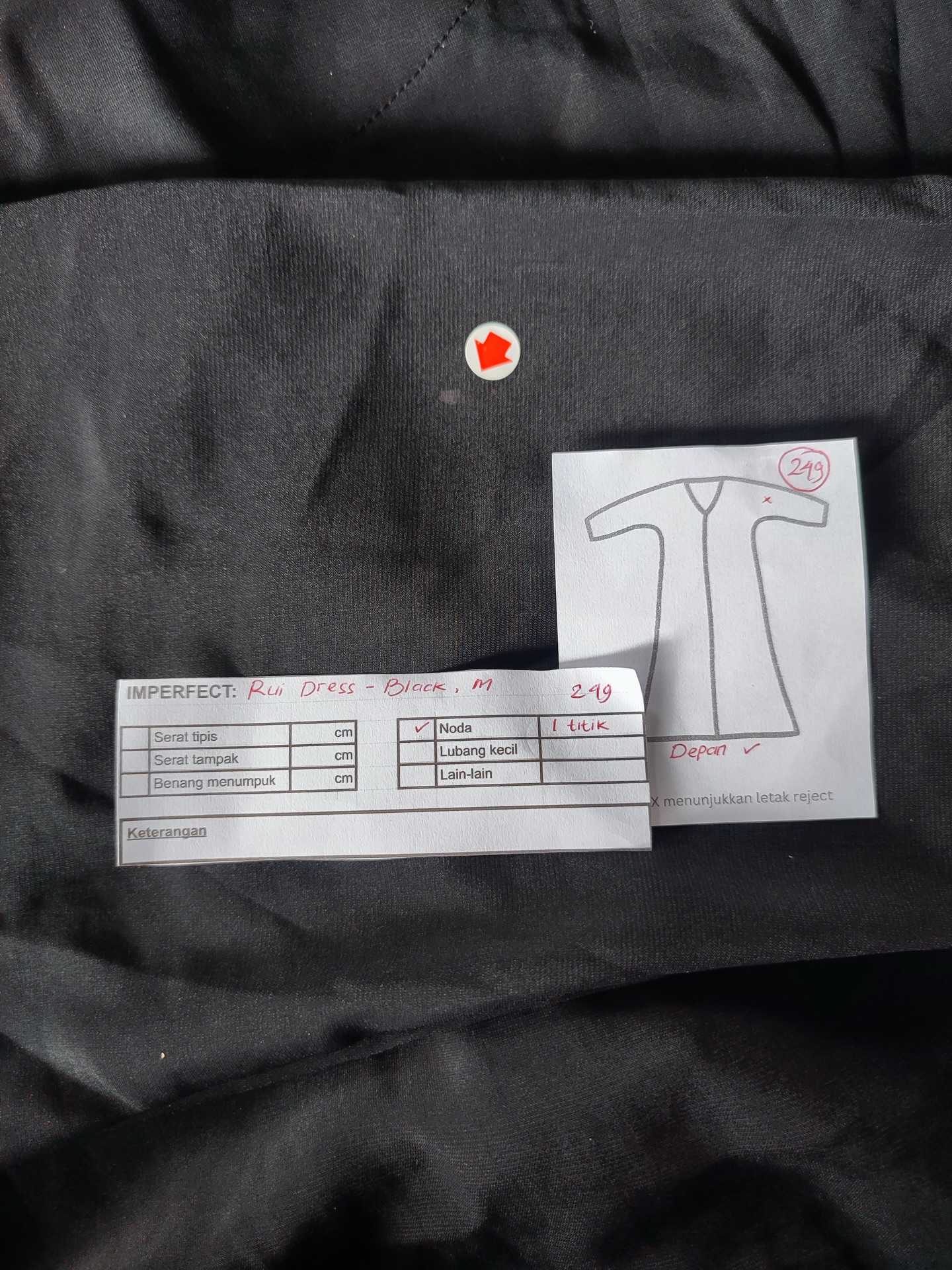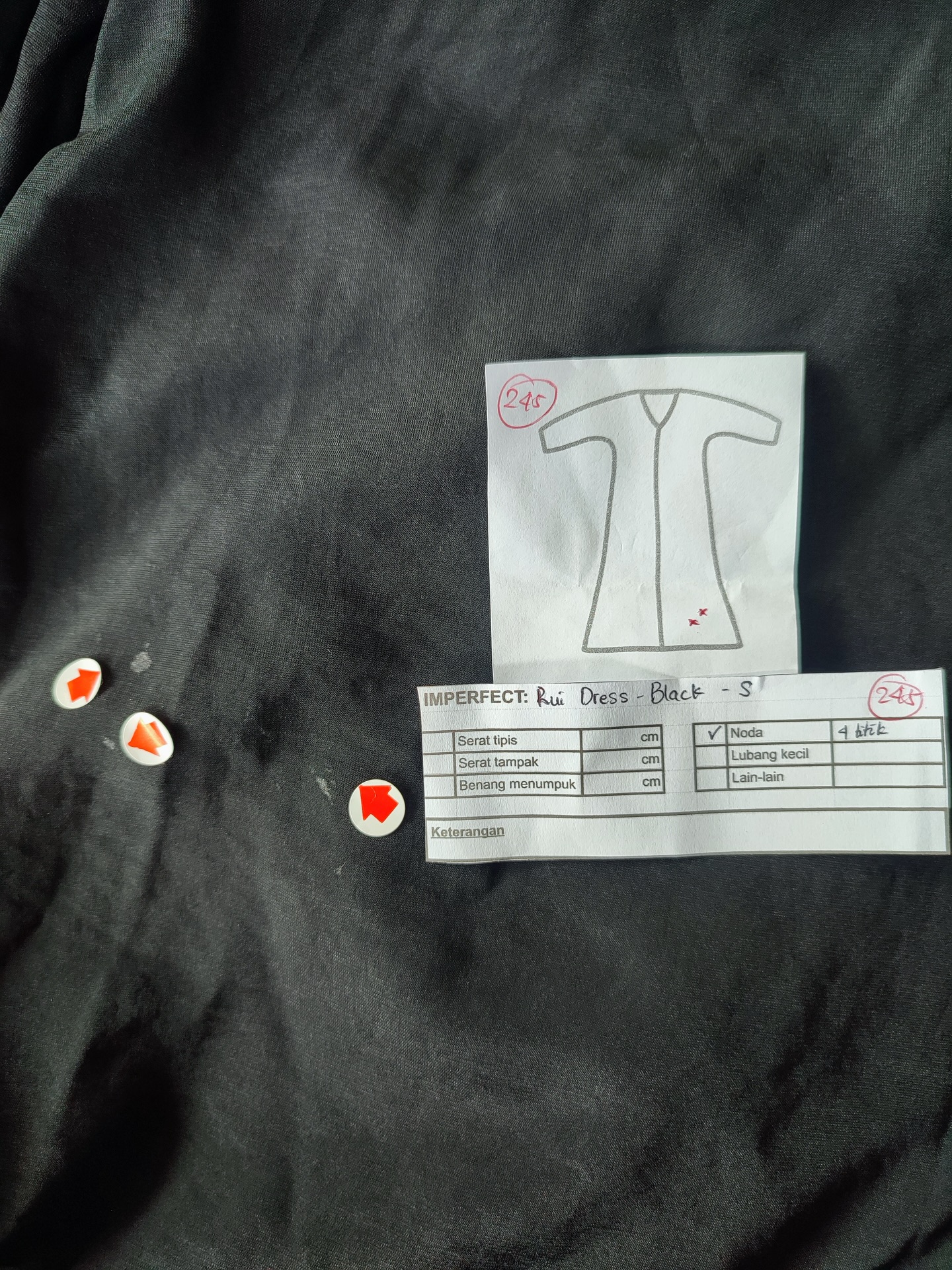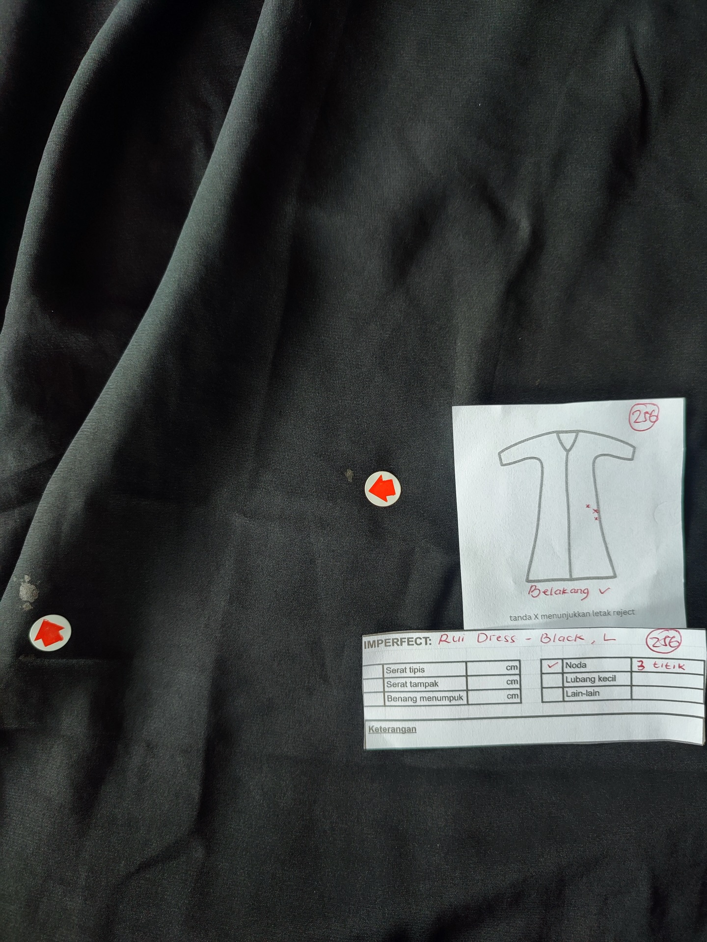 photo includes code, color, size, and defect details.