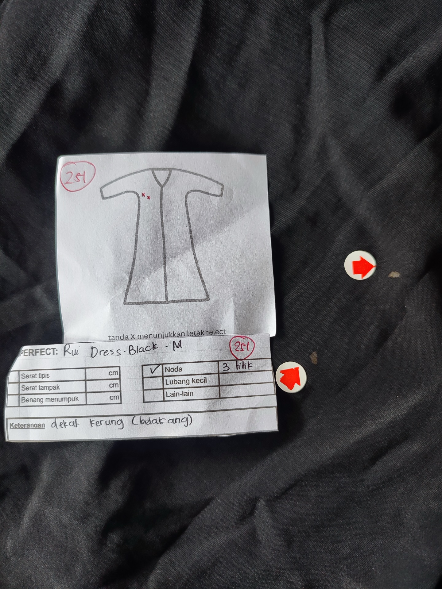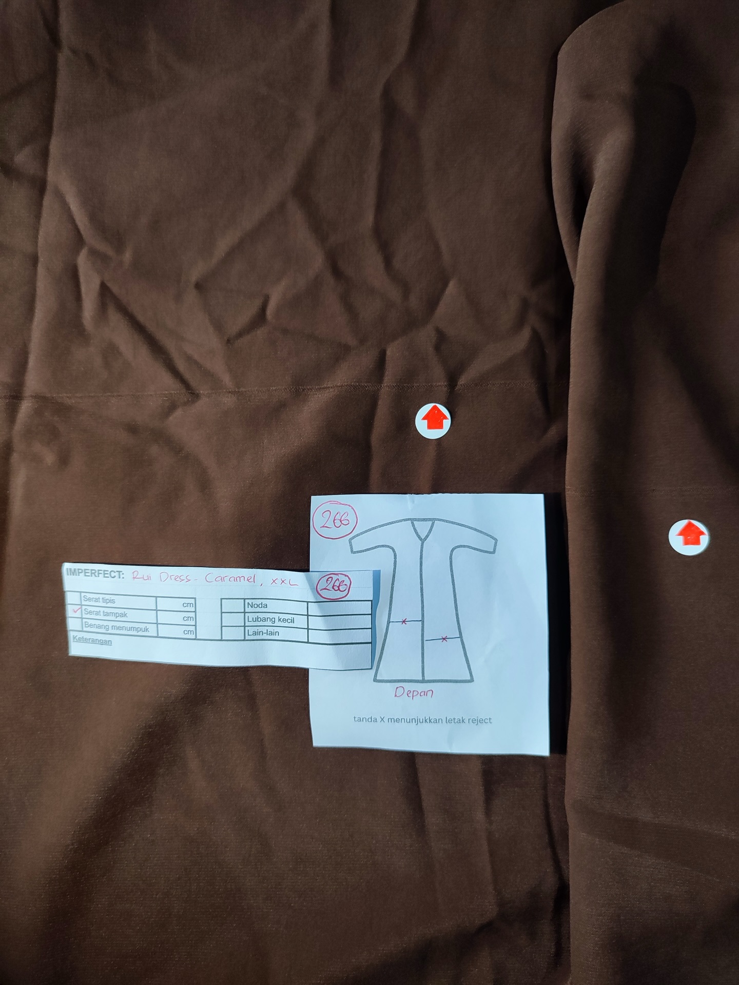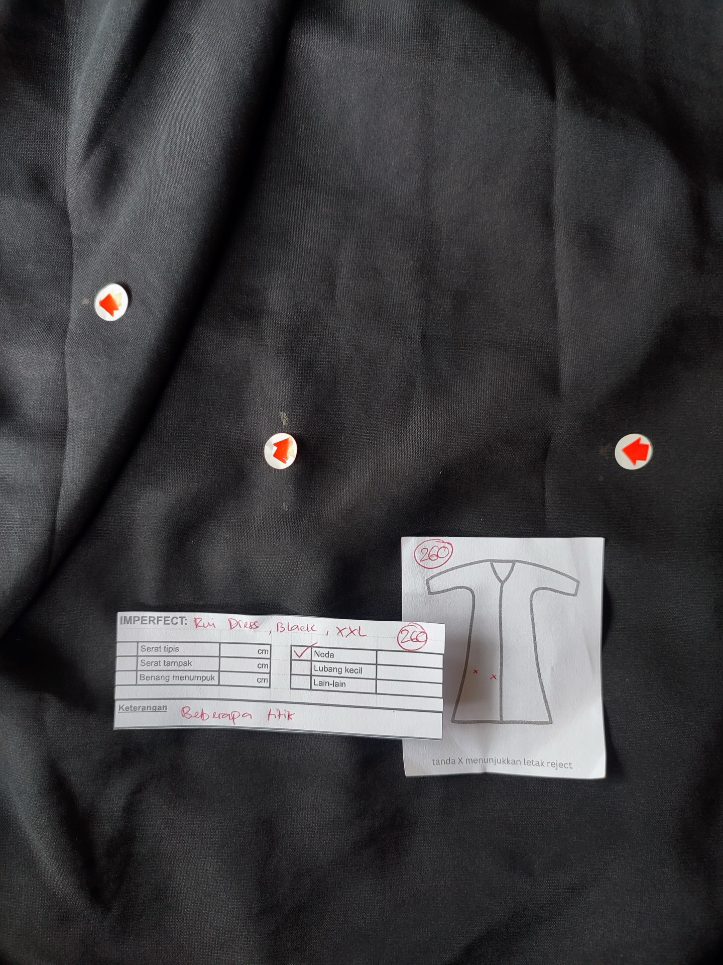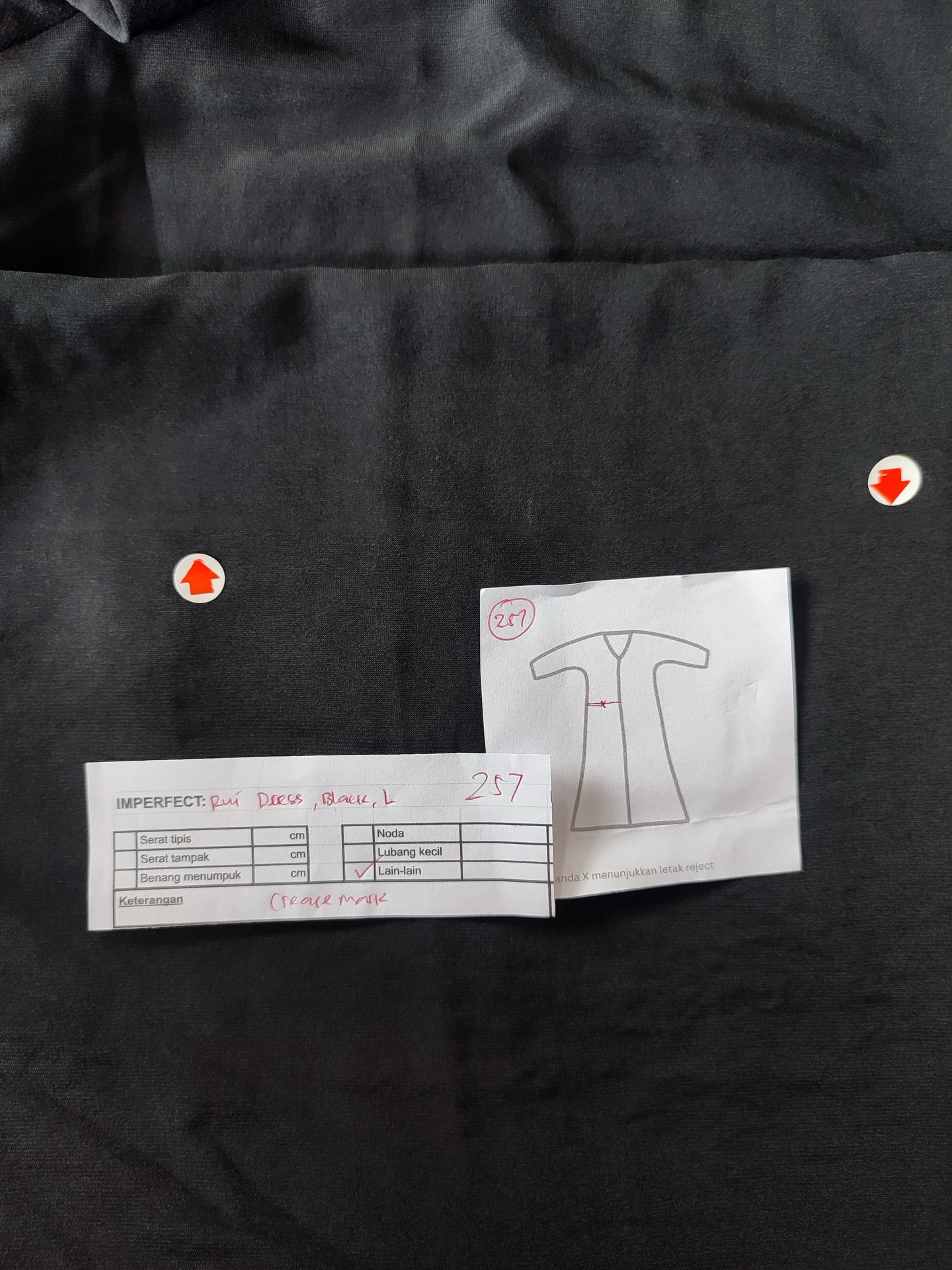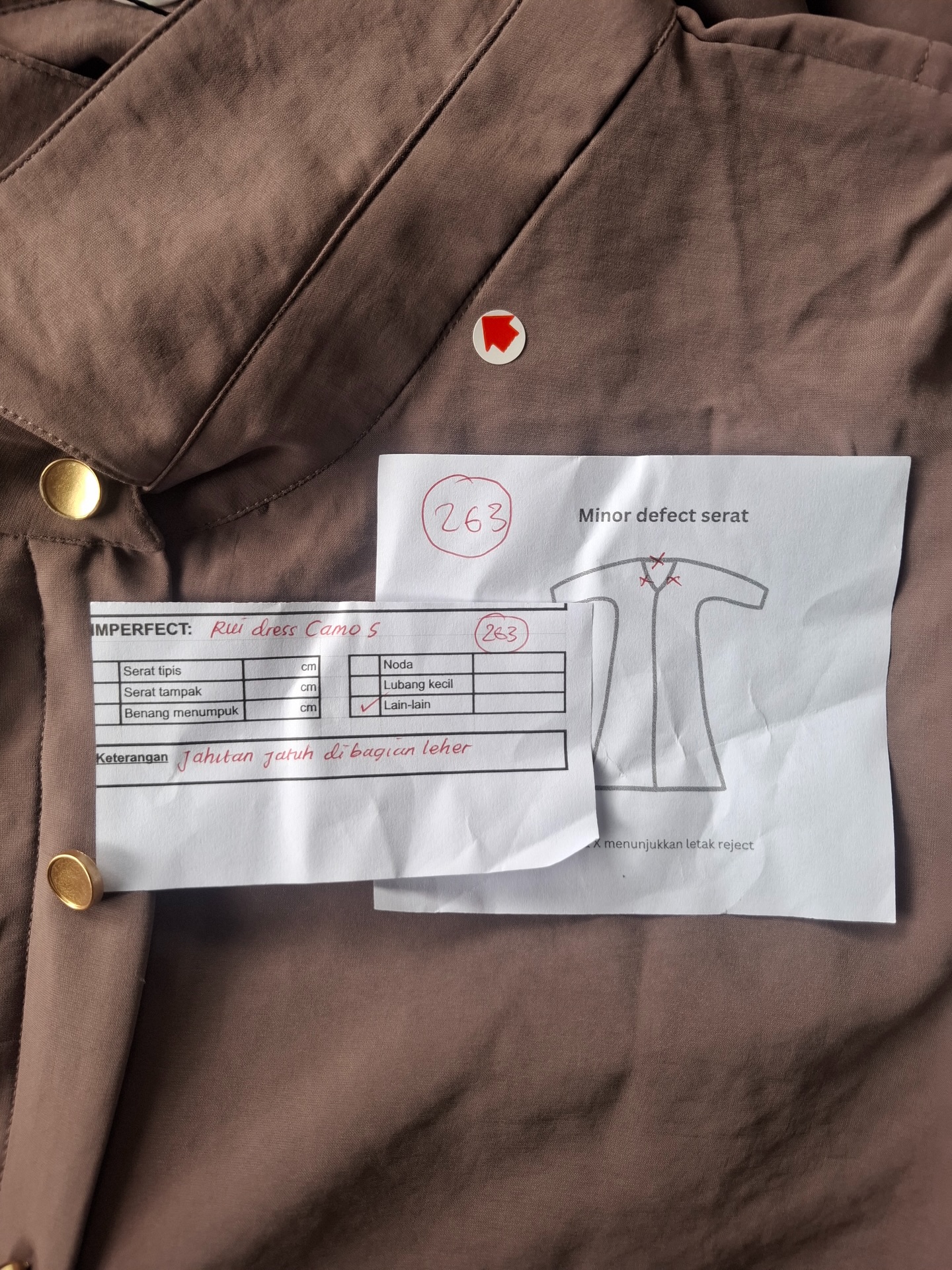 photo includes code, color, size, and defect details.