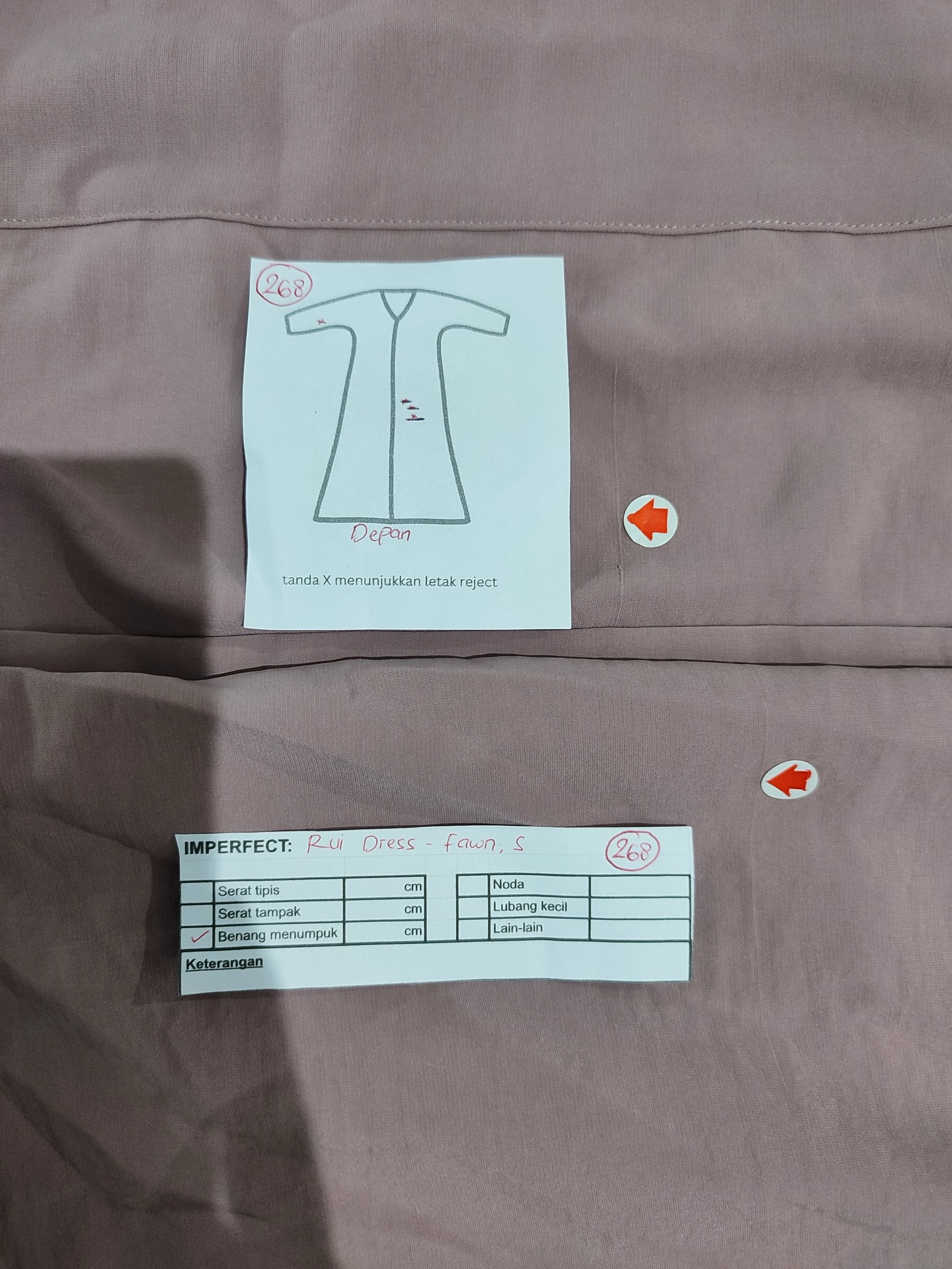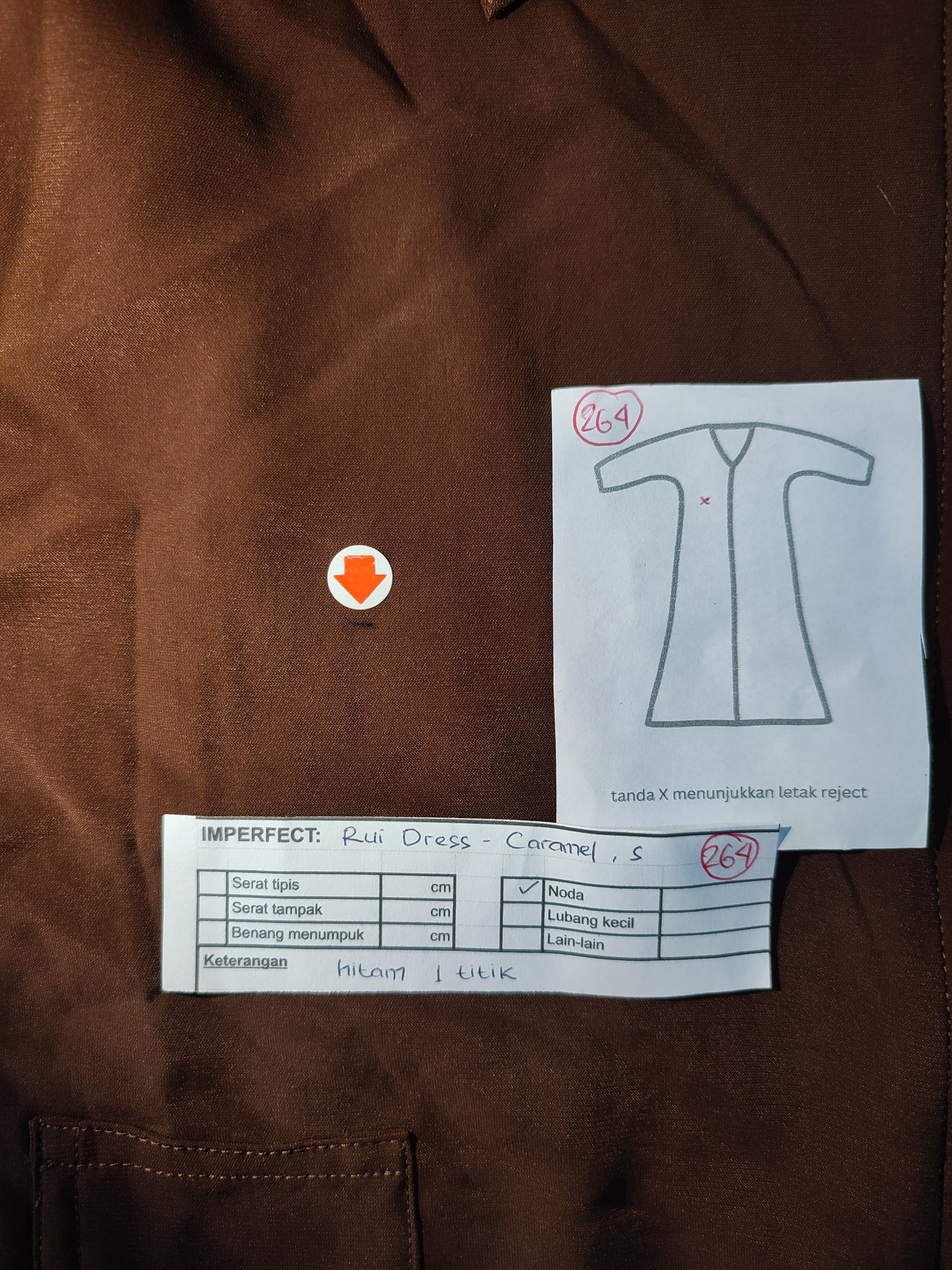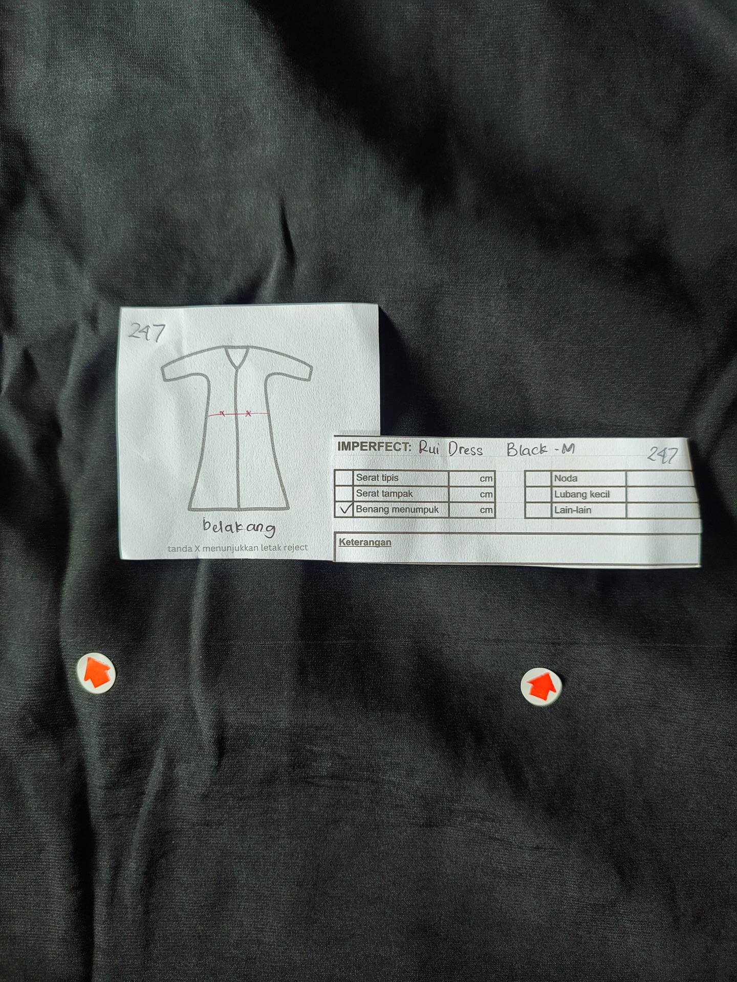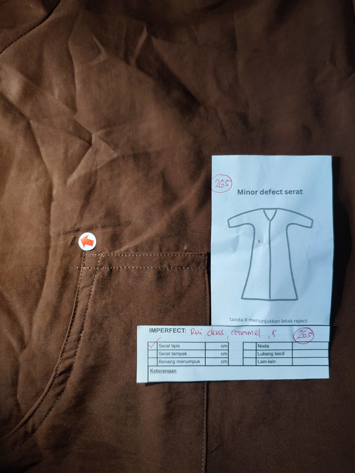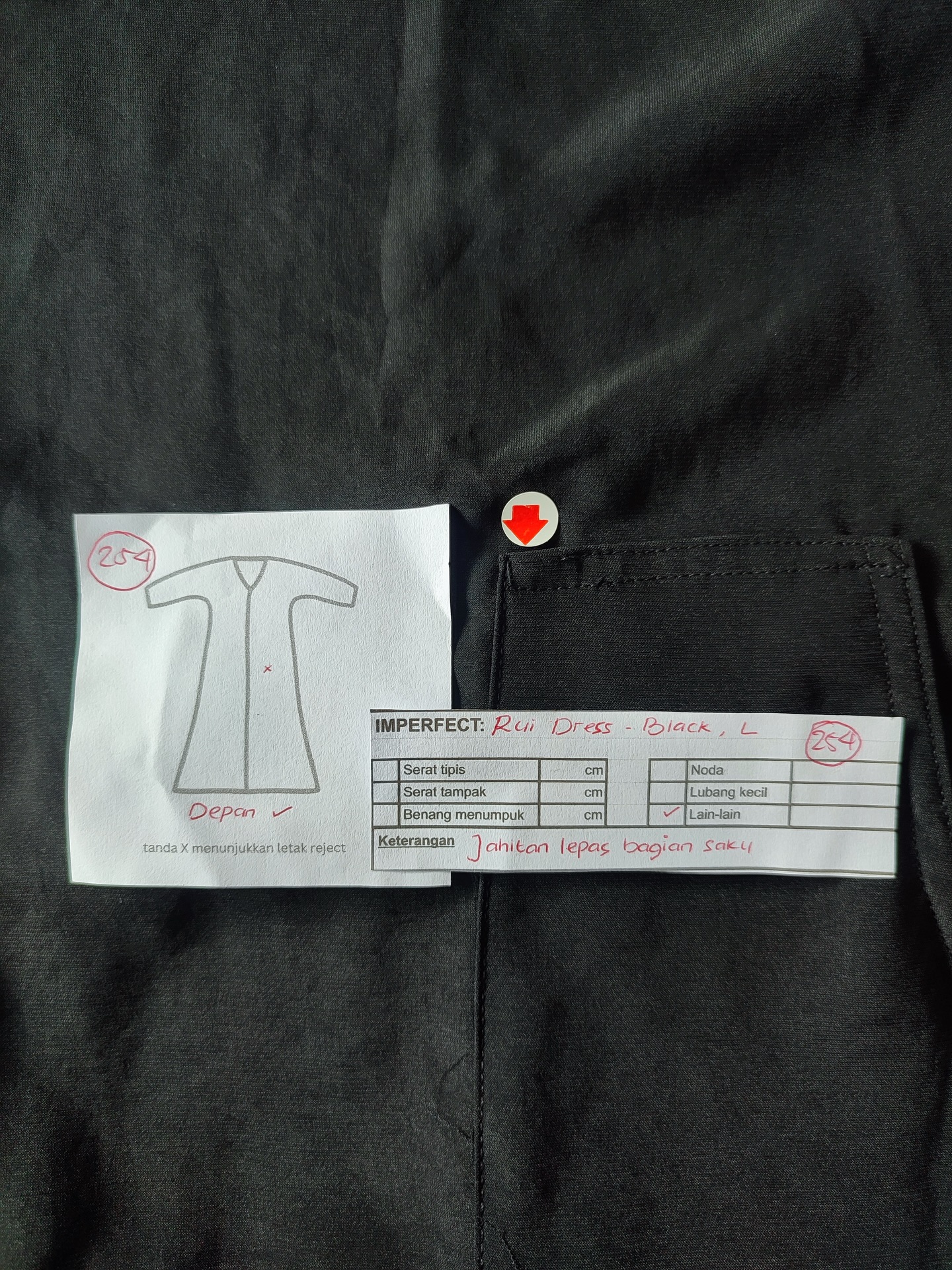 photo includes code, color, size, and defect details.