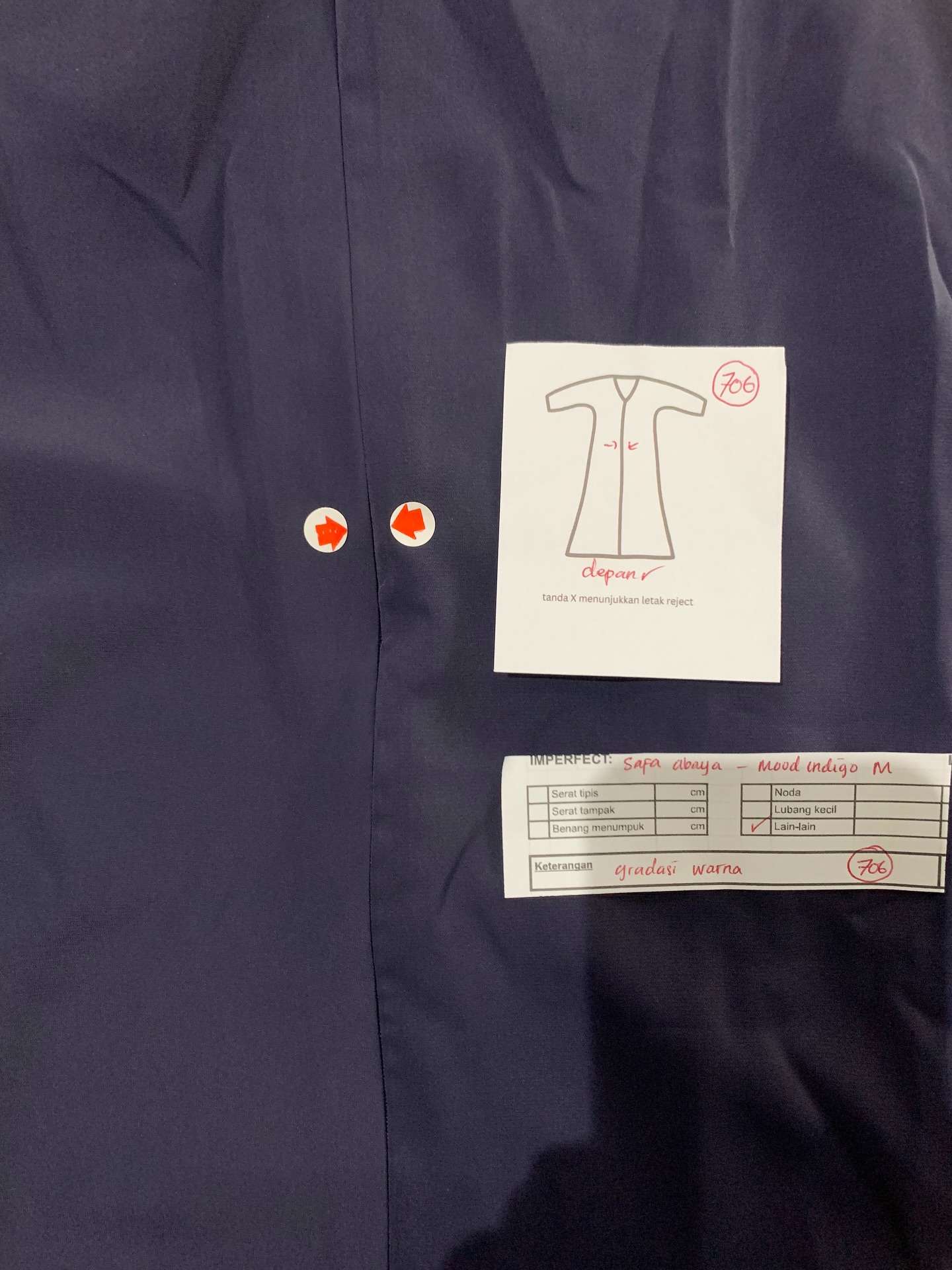 photo includes code, color, size, and defect details.